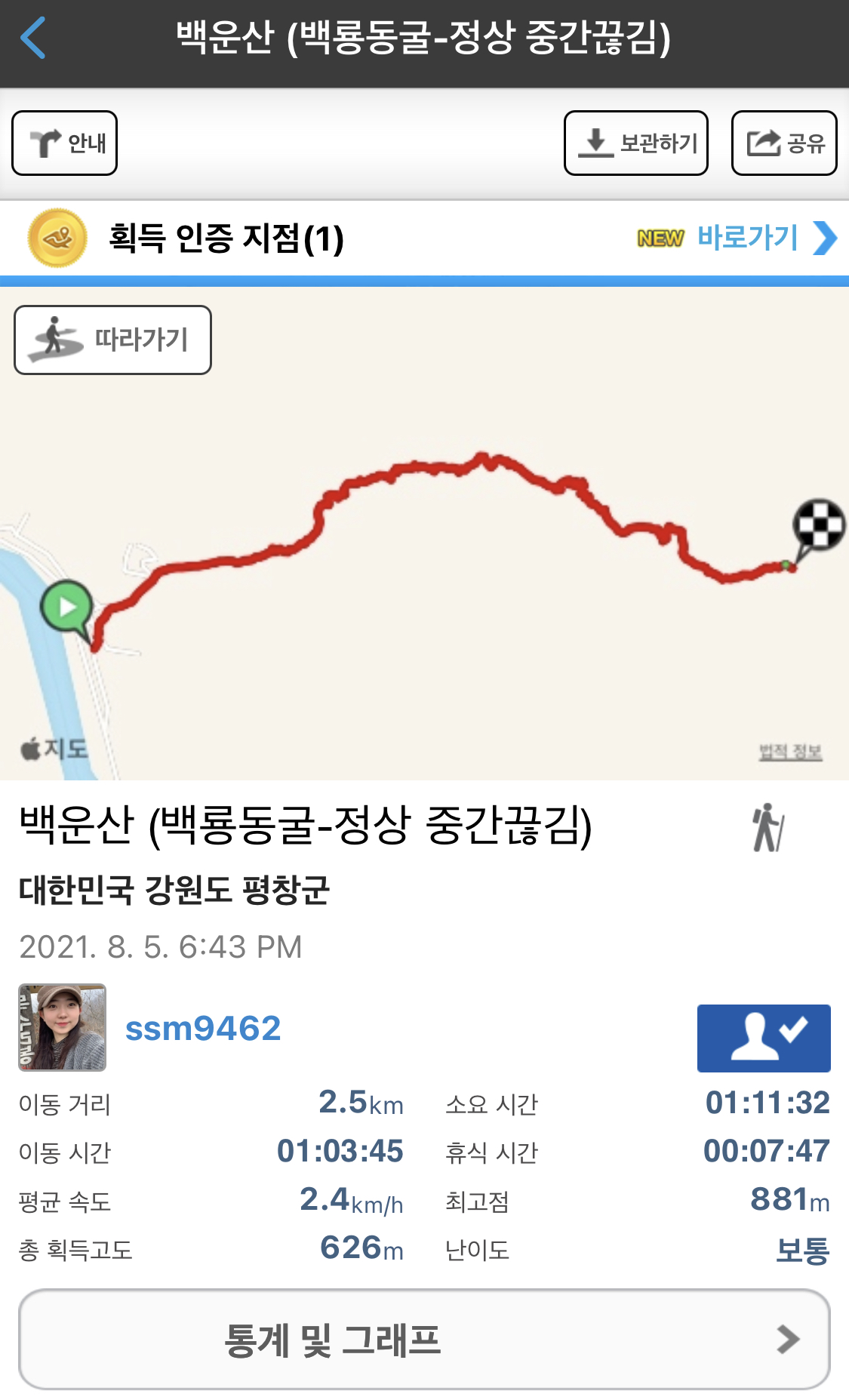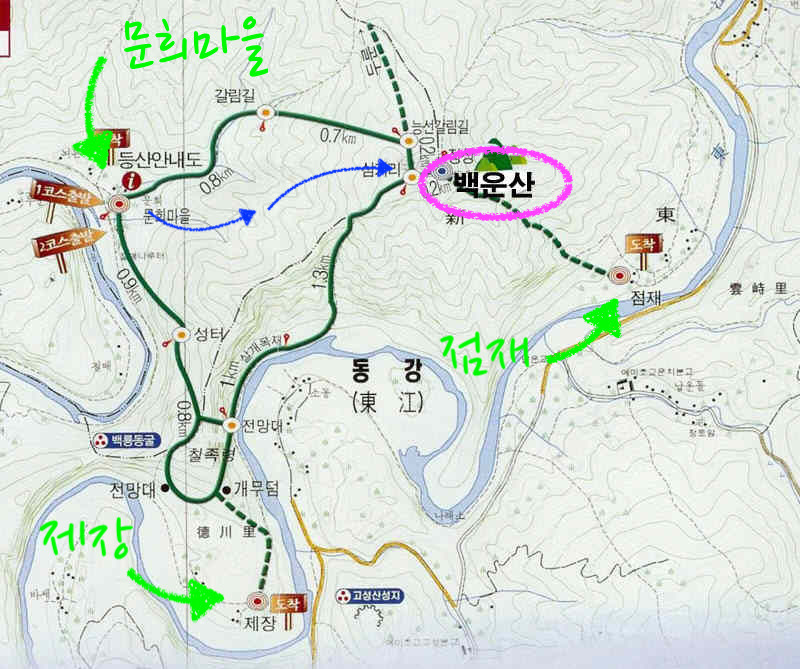 전체 코스 : 백룡동굴주차장 ~ 급경사 ~ 정상