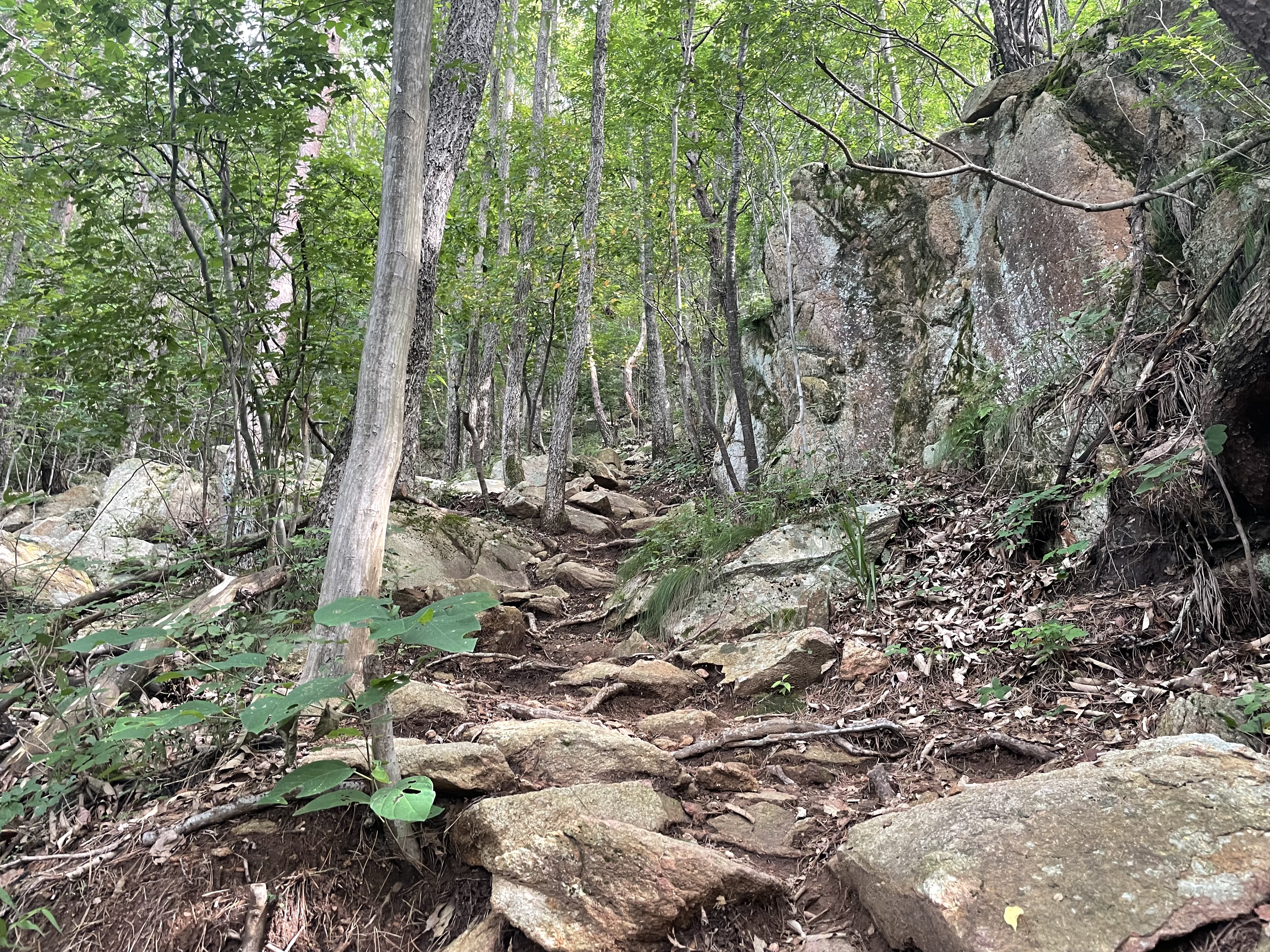 매우 짧고 쉽지만 큰 바위가 여기저기 있어