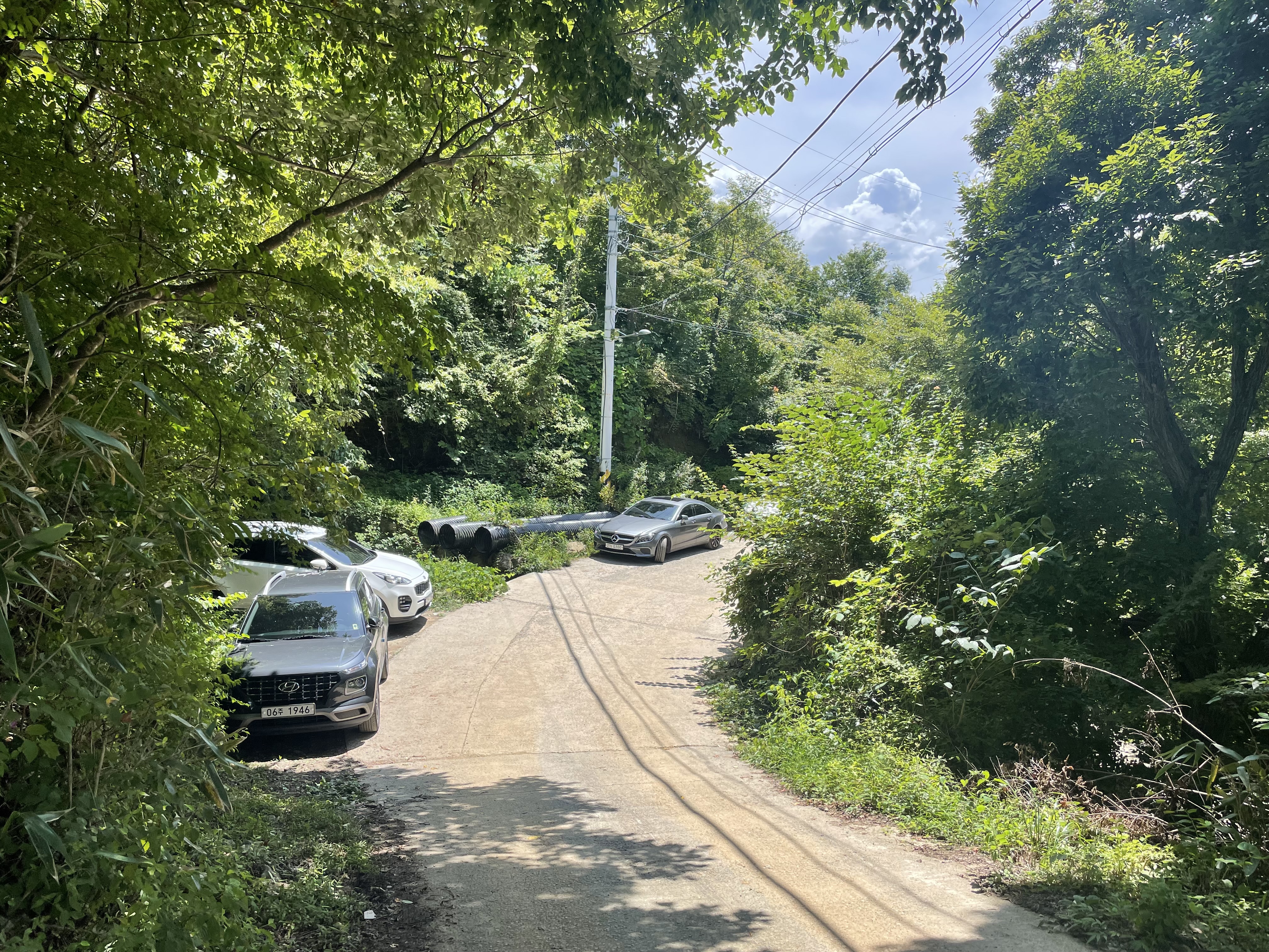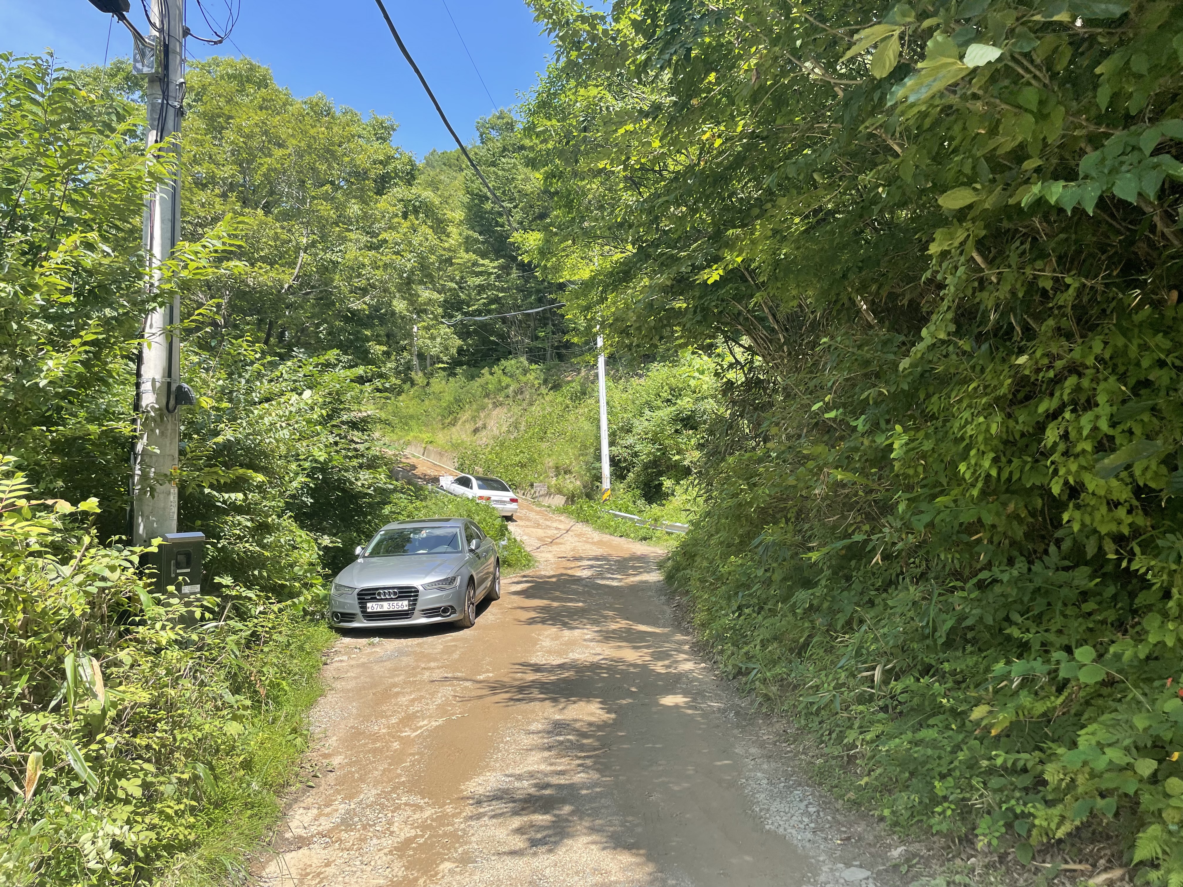 🔺금새 도착했다. 이곳에서 부터는 작은 굴목재로 향하면 된다. 등산로는 아주 잠깐의 오르막 후 우리가 보리밥집을 거쳐오면서 느꼈던 매우 완만한 평지로 구성되어 있다. 특히 산죽과 자작나무, 참나무가 자리잡고 있어 상쾌한 스톤치드를 느끼며 등산이 가능하다.