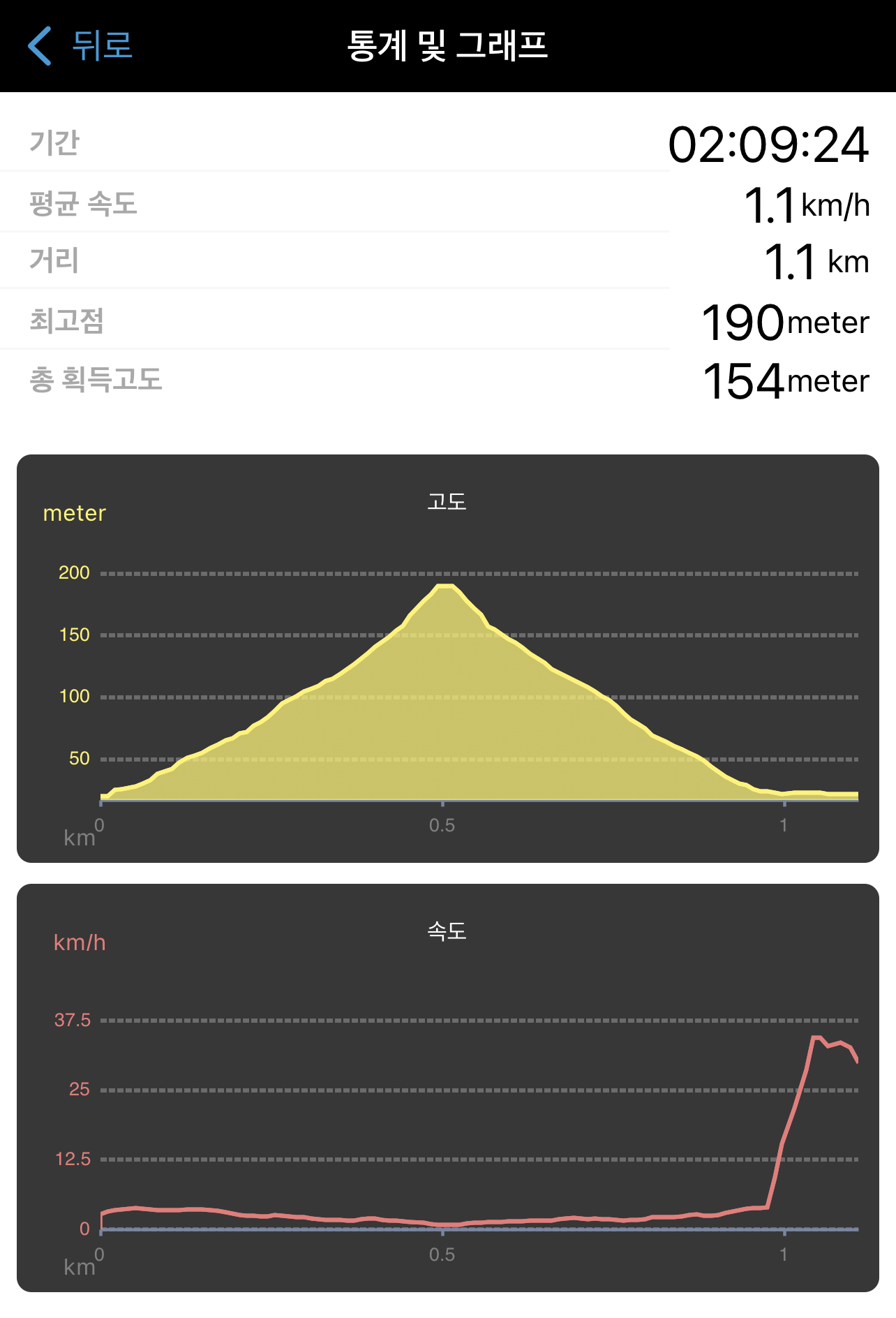 편도 거리가 약 0.5km 인것을 감안하고 누적고도가 150이라는 것은