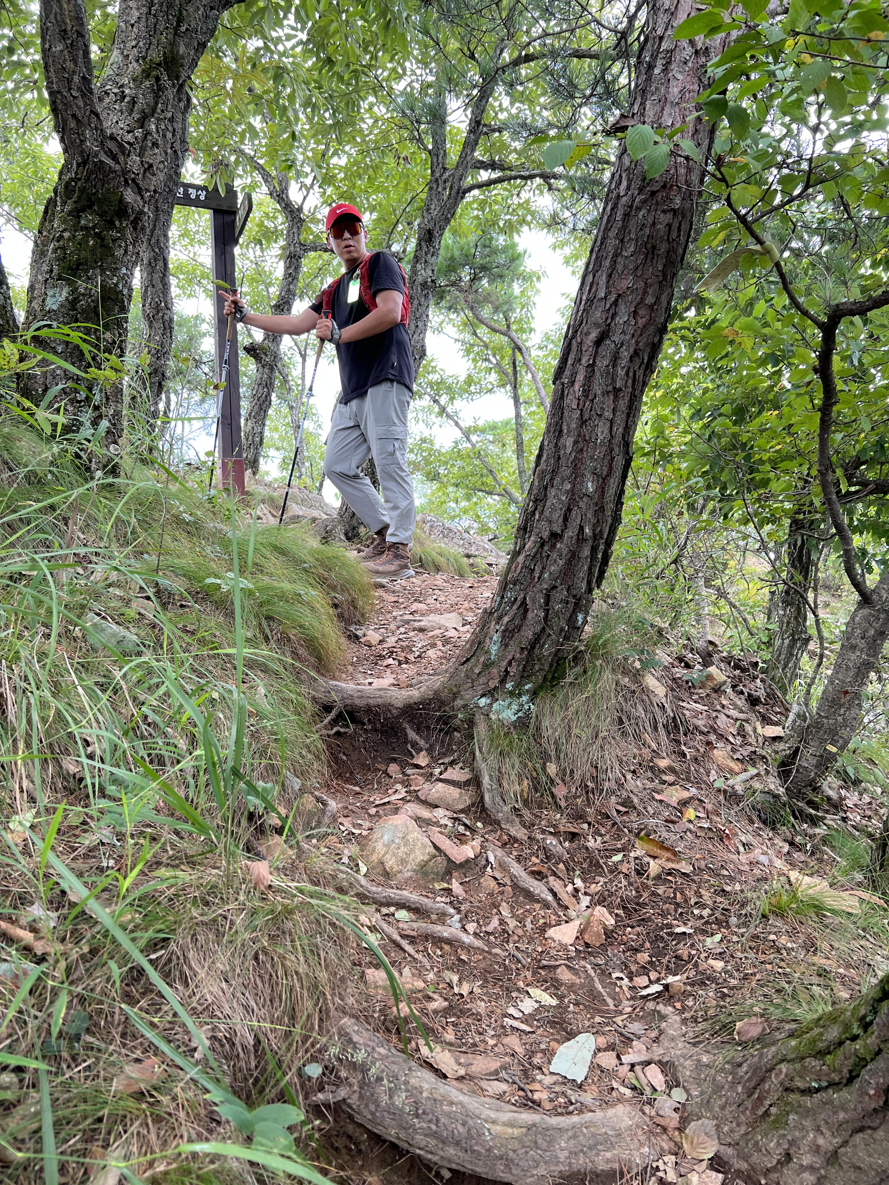 🔺코스가 꽤나 급경사입니다, 딱 봐도 스틱이 많은 도움이 되는 길입니다. 저는 절대적으로 스틱 사용을 추천드립니다. 올라가는 길은 대부분 뷰가 없으며 약 2곳 정도 뚫린 뷰가 있는데, 이후에 설명드리겠습니다.