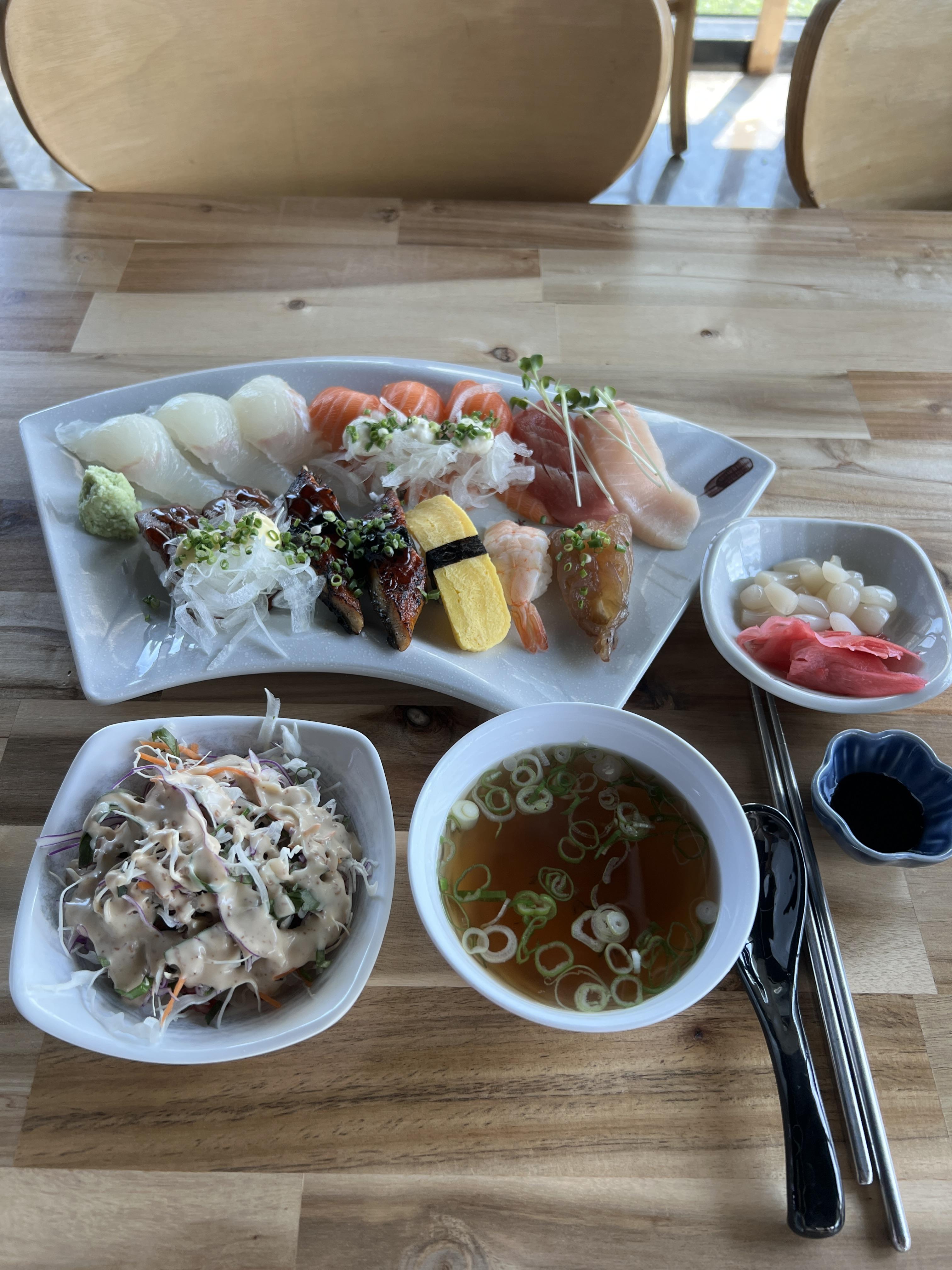 사실 스시를 매우 좋아하는 저로 써는 주인장마음대로 구성이 매우 아쉬웠습니다. 특히 광어 3p, 연어 3p는 조금 실망.. 장국은 깔끔했으며, 샐러드는 소스가 꽤 괜찮았습니다. 아마 시제품인것 같습니다.