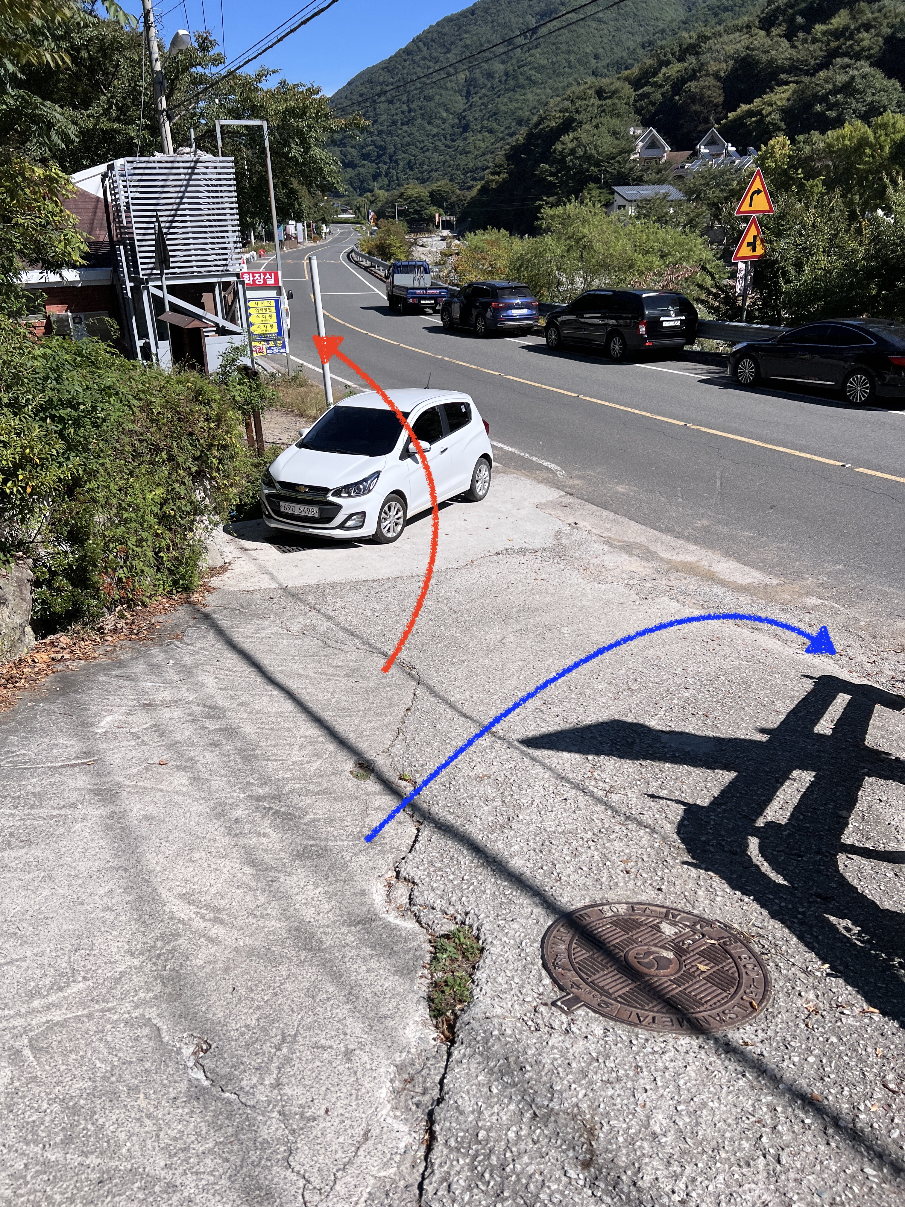 즉, 빨간색 화살표를 따라 가셔야 하며, 파란색 화살표 방향으로 가시면 절대 안됩니다. 주의하세요!