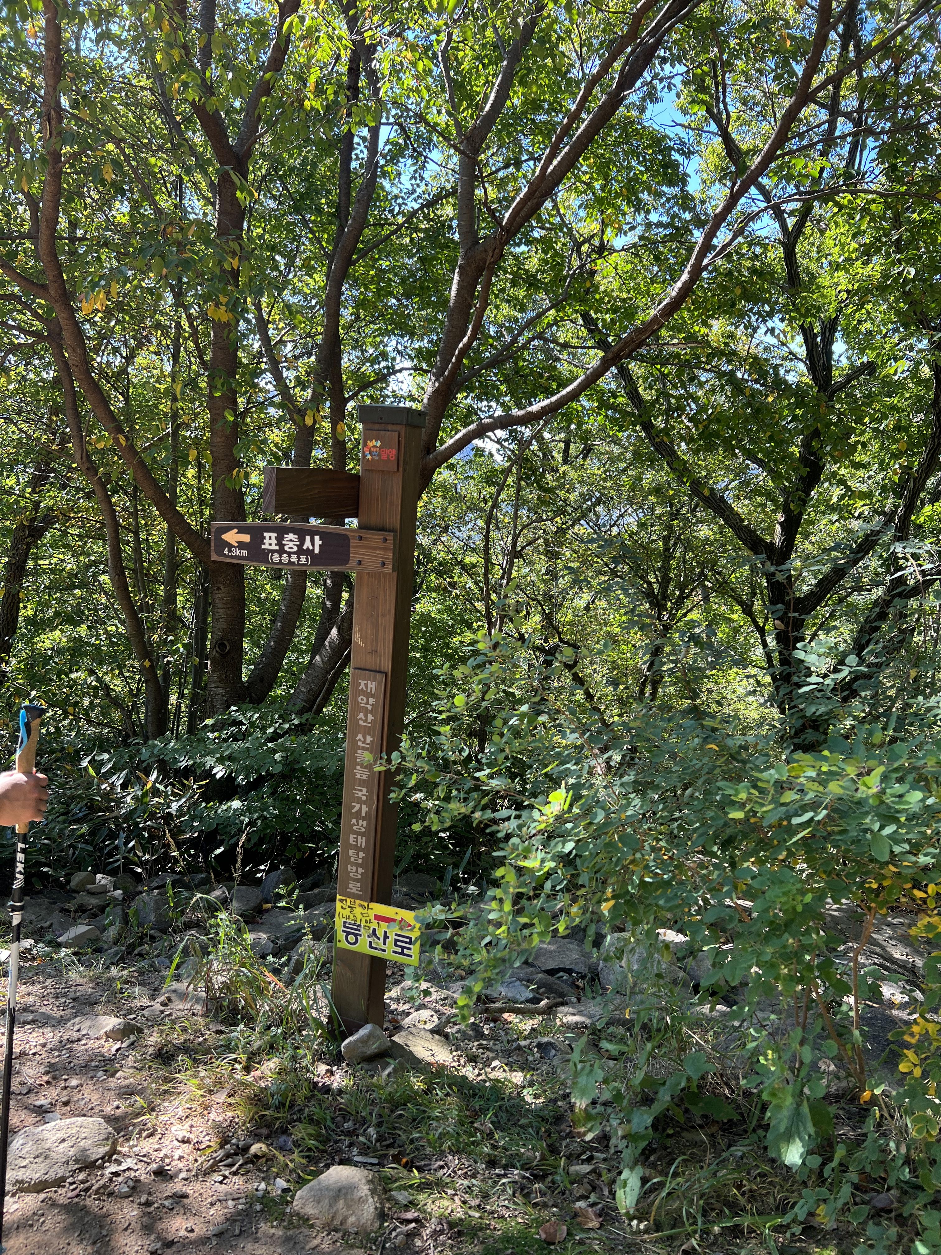 🔺천황산으로 가기위해서 한가지 주의할 코스가 바로 이 지점 입니다. 여기 바로 전에 화장실이 있습니다. 참고하세요! 깨끗하지는 않습니다. 바로 이구간에서 푯말을 따라 천황재로 가시면 안됩니다. 케이블카 방향으로 가셔야합니다.