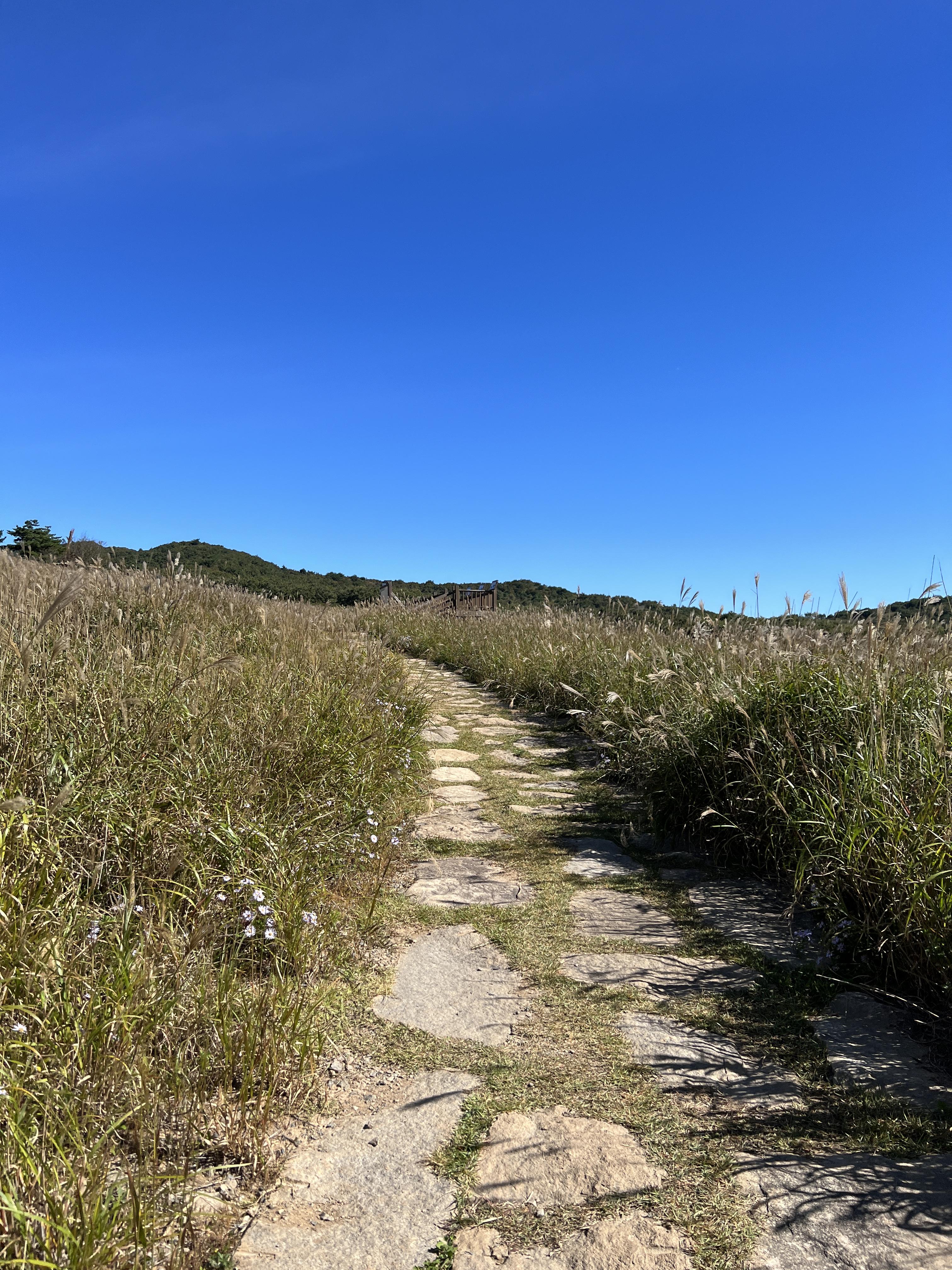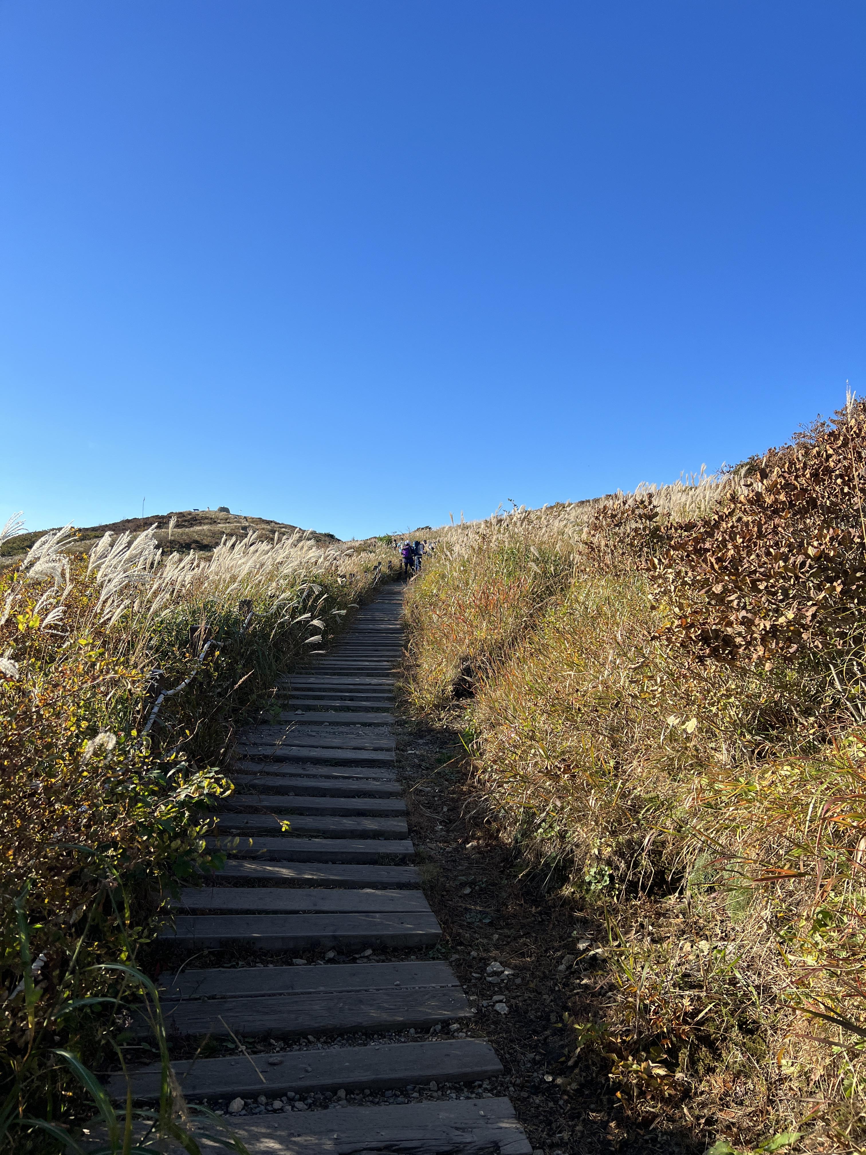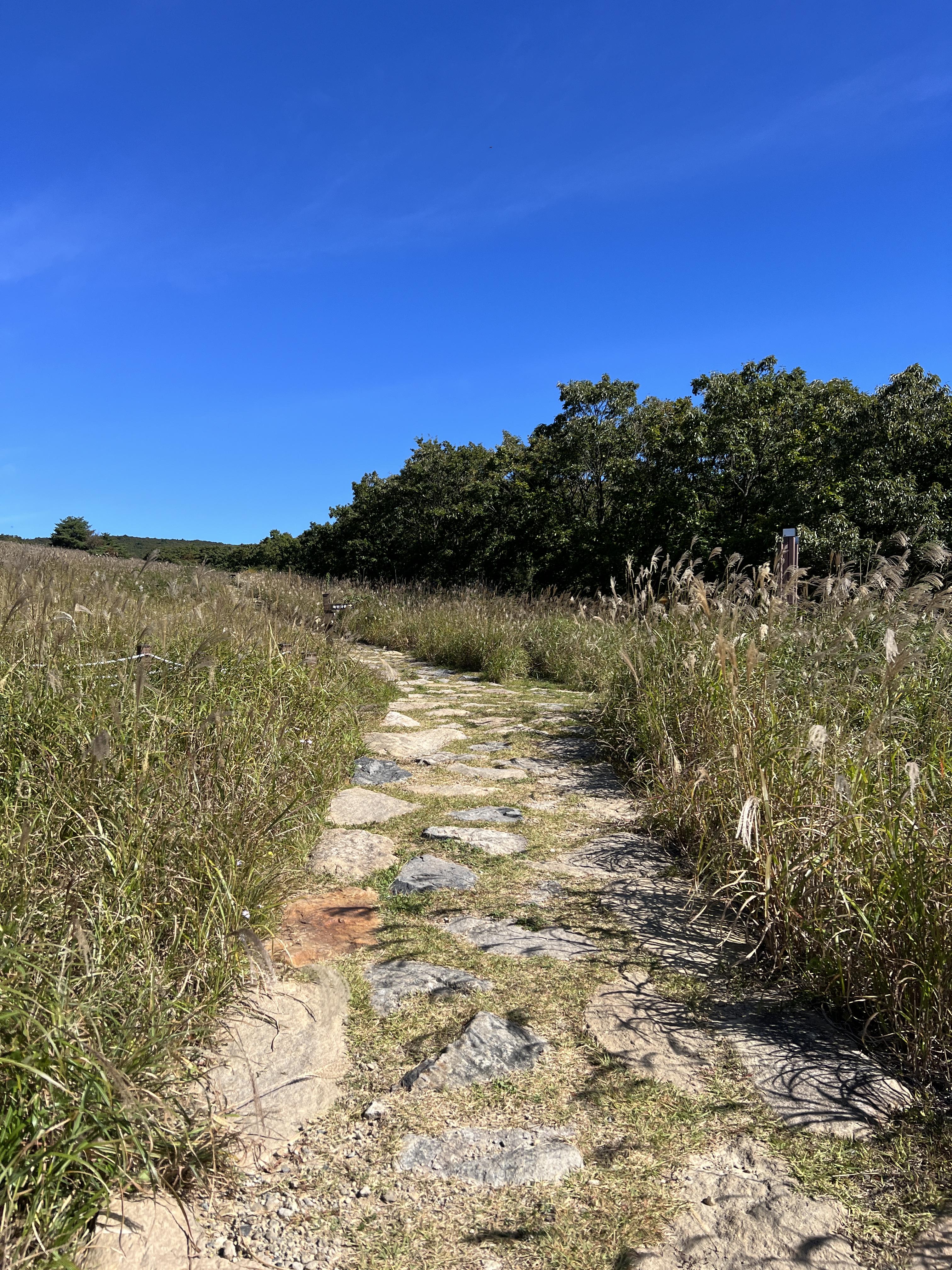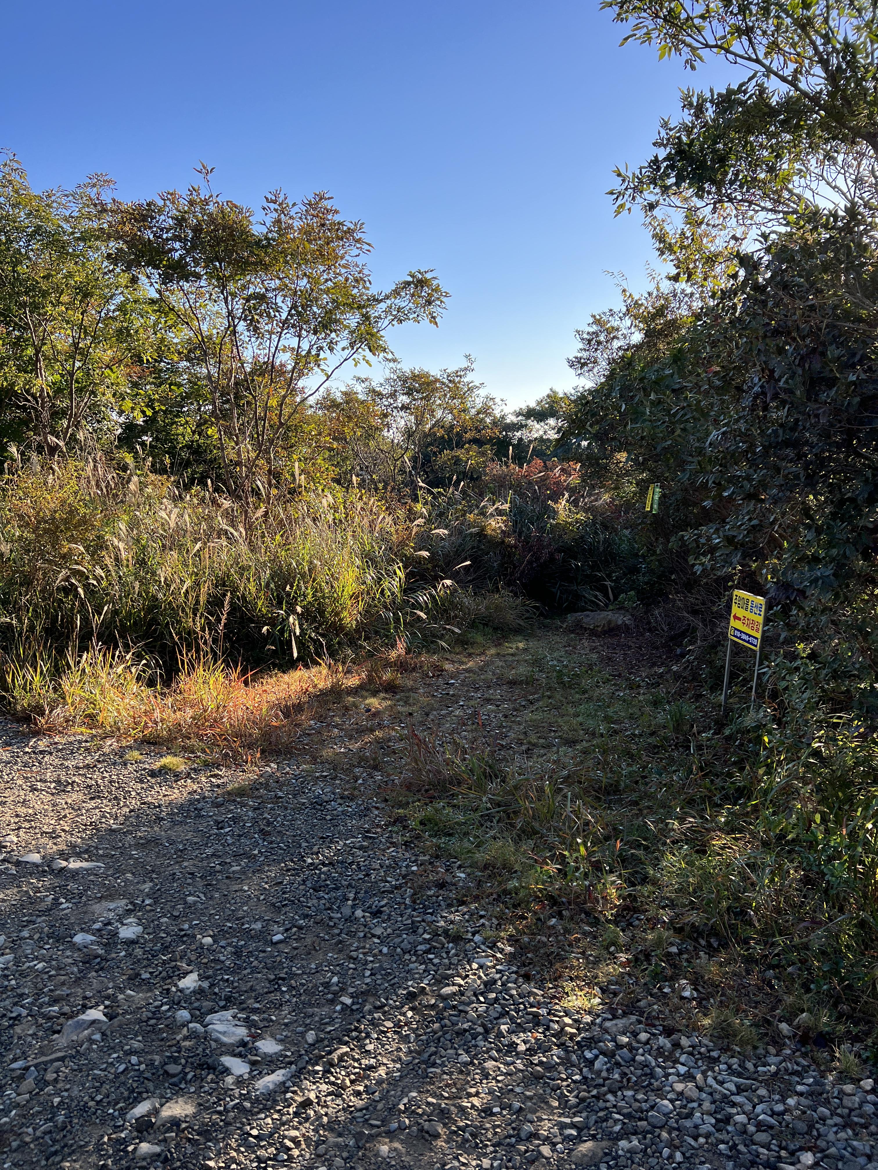 🔺죽전마을로 향하는 중반 길은 위 사진처럼 억새로 이뤄진 매우 잘 정비된 길입니다. 이 구간에서 또 속도를 낼 수 있습니다. 죽전마을 입구라는 표지판이 나올때까지 빠른 걸음이나 가벼운 러닝으로 페이스를 끌어올리는데 집중합니다.