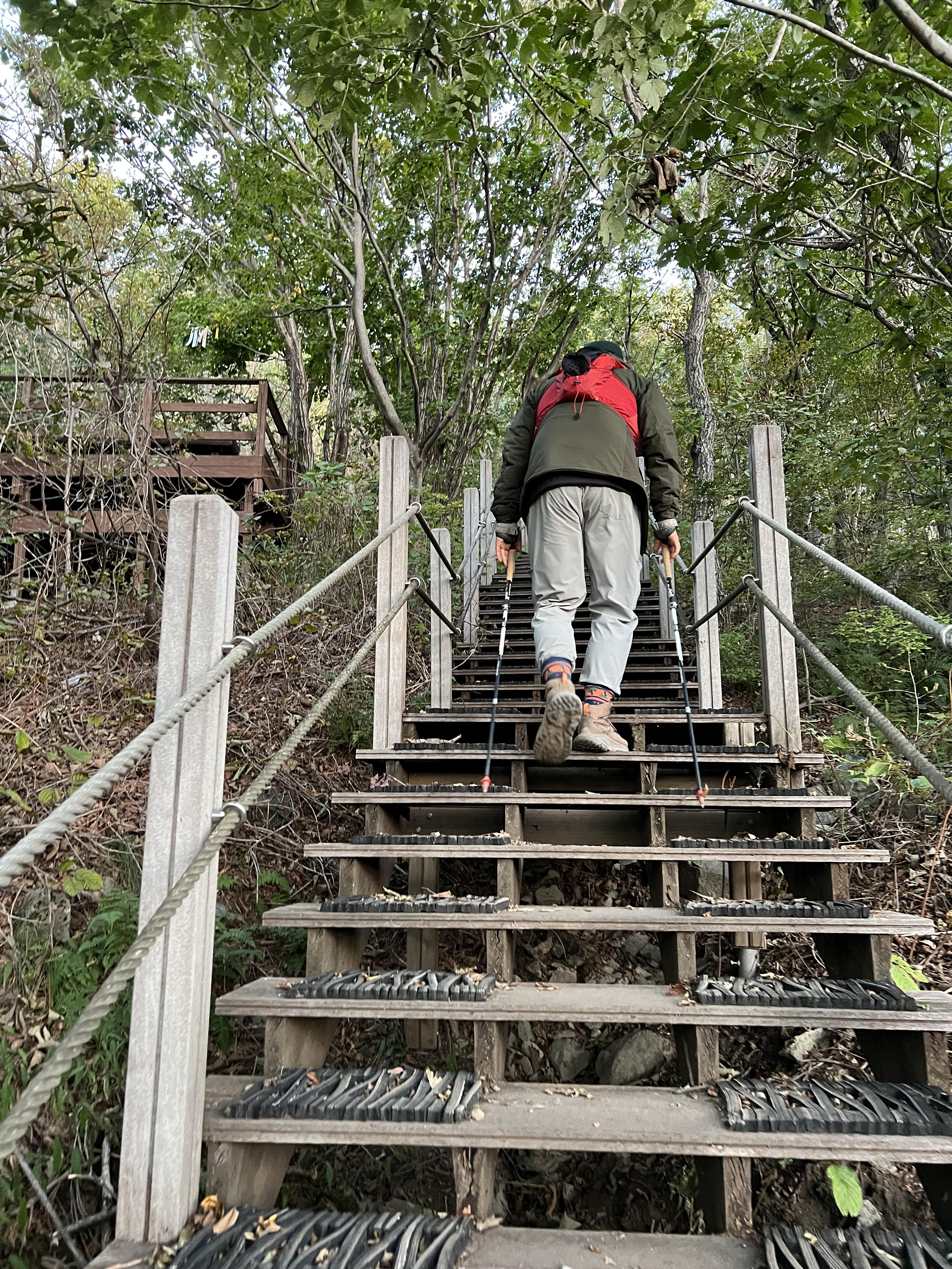 🔺위 사진에서 보이다 시피 계속해서 계단길의 연속입니다. 등산 코스는 알바(다른곳으로 잘못가는 행위)를 할 일이 전혀 없을 정도로 매우 직관적이며 길이 잘 되어 있습니다.