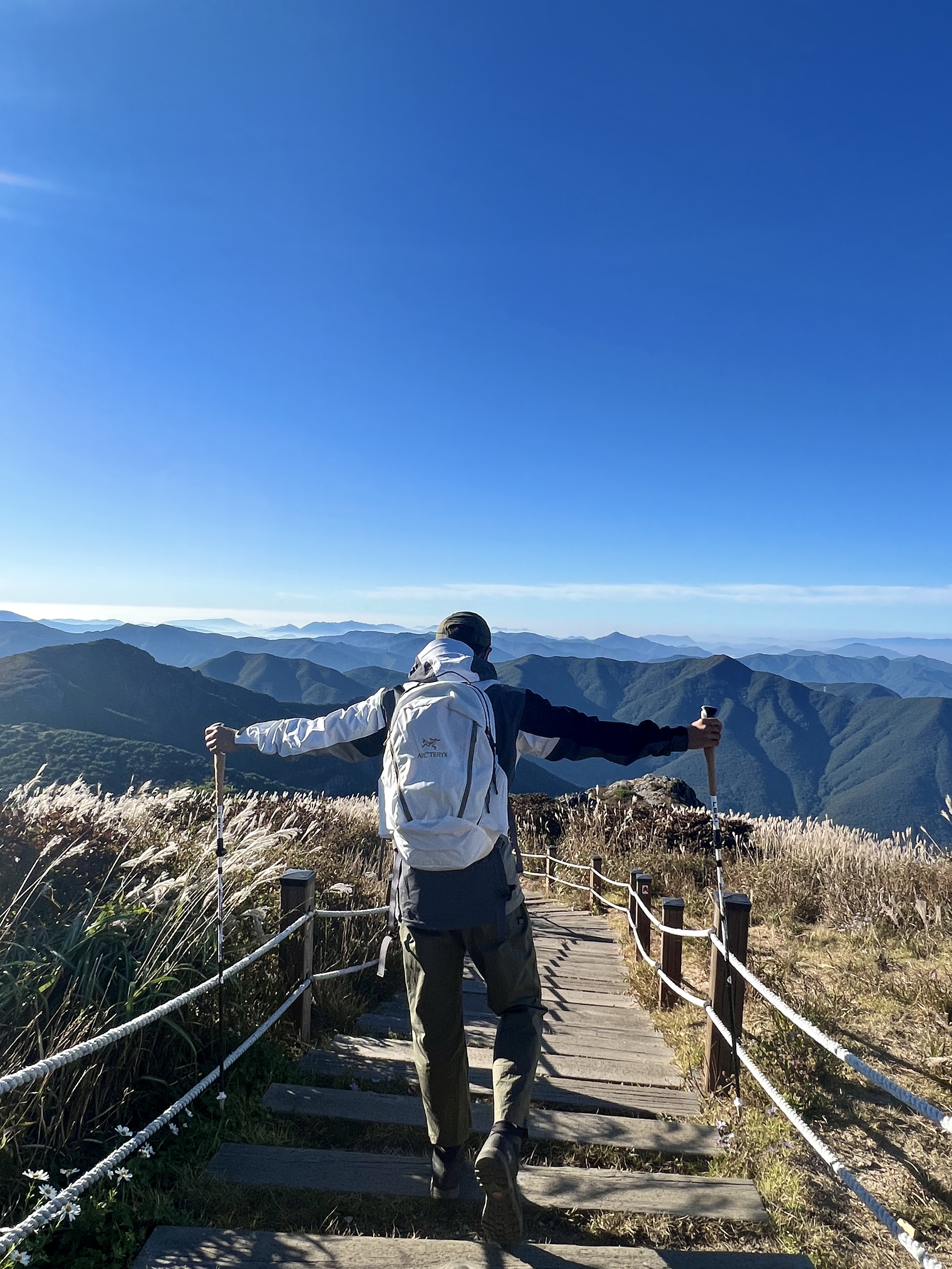 🔺재약산에서 죽전마을 가는 길이 이번 코스에서 가장 길며 하산길은 가파르기에 가장 난코스입니다. 초입은 데크로 시작하여 중반에는 억새길을 거쳐 죽전마을 입구로 들어서게 되면 가파른 하산길이 연속됩니다.