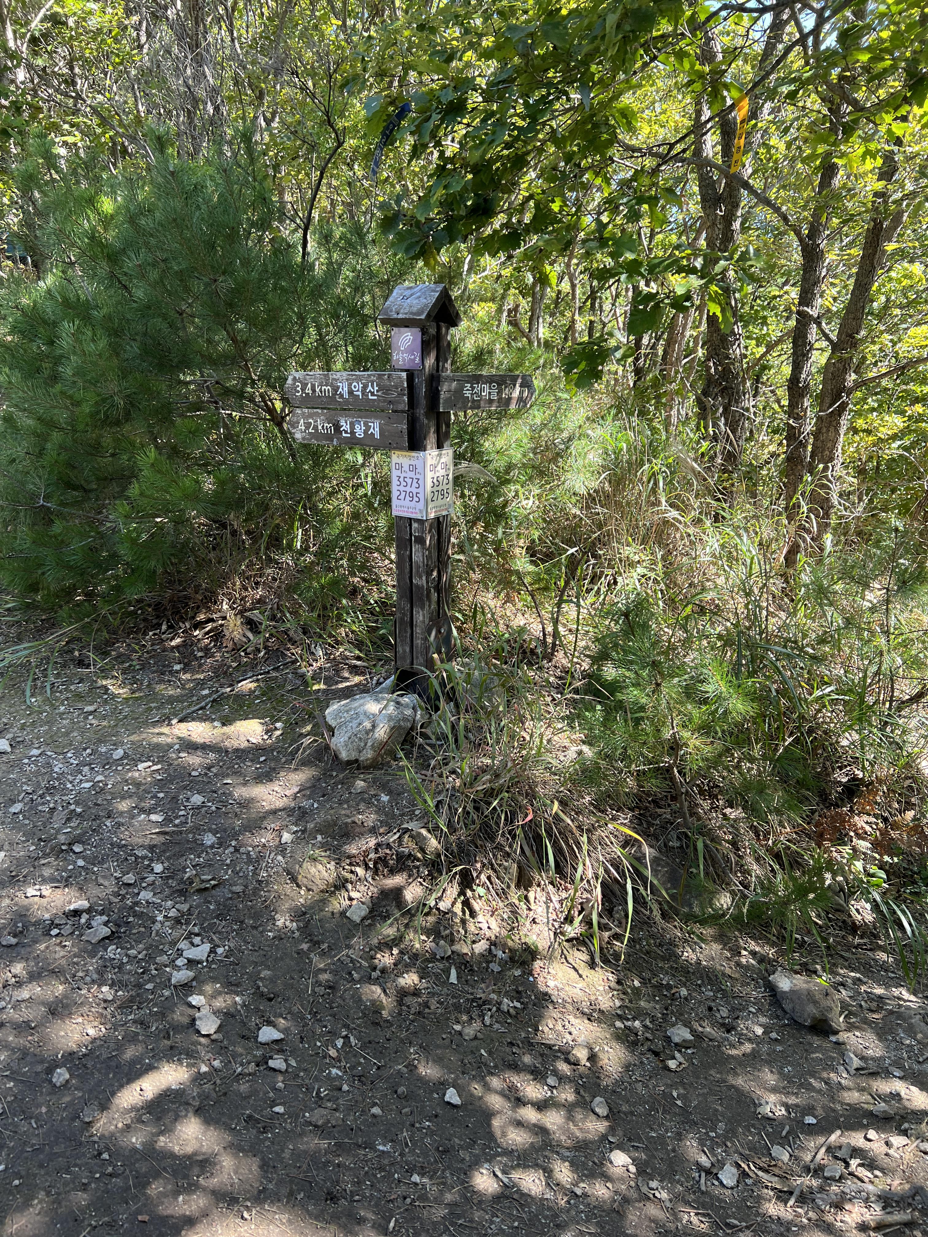 🔺죽전마을 표지판까지 빠르게 오셨다면 여기서부터 본격적인 하산이 시작됩니다. 매우 가파른 길로 하산을 마쳐야하니, 주의하세요!