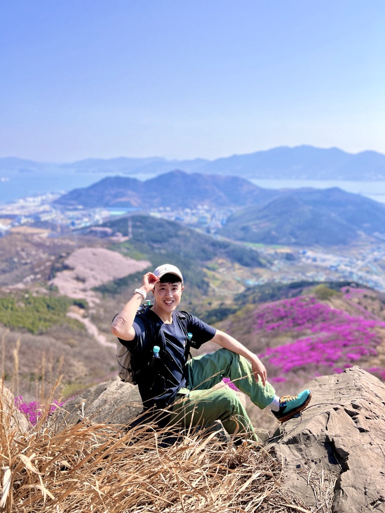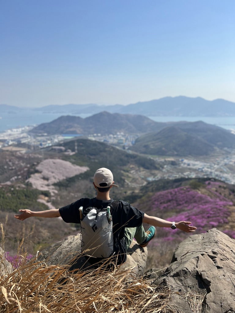🔺저는 진달래가 절정인 시기에 방문하지는 않고 떨어질 무렵에 방문하였지만, 위 사진의 진달래 능선과 벚꽃 군락지를 배경삼아 많은 사람들이 일몰과 일출 사진을 찍곤합니다. 보통 사람들이 찍은 일출,일몰 사진을 보면 정말 예술인데, 저는 영취산을 방문한 이후에 알게되어 참 아쉬움이 많이 남기도 했던 것으로 기억합니다.