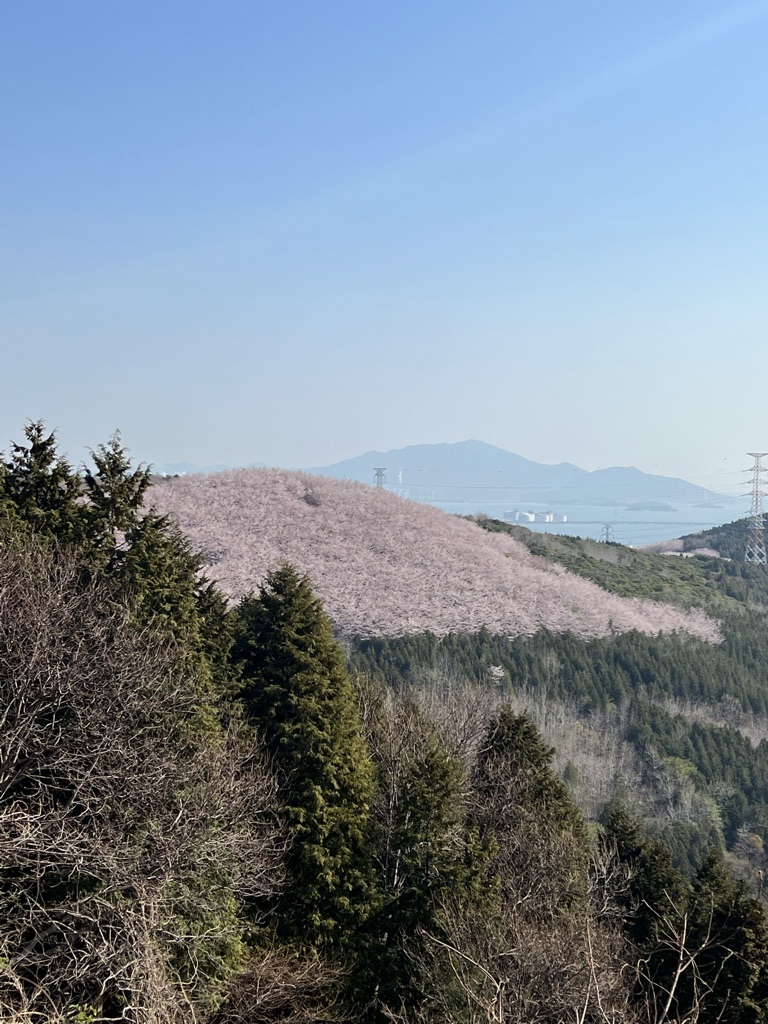 이곳의 뷰포인트가 제 개인적인 생각으로는 영취산에서 가장 이쁜 뷰를 보여주는 곳이었습니다. 벚꽃과 진달래 그리고 바다와 많고 많은 크고 작은 섬들.