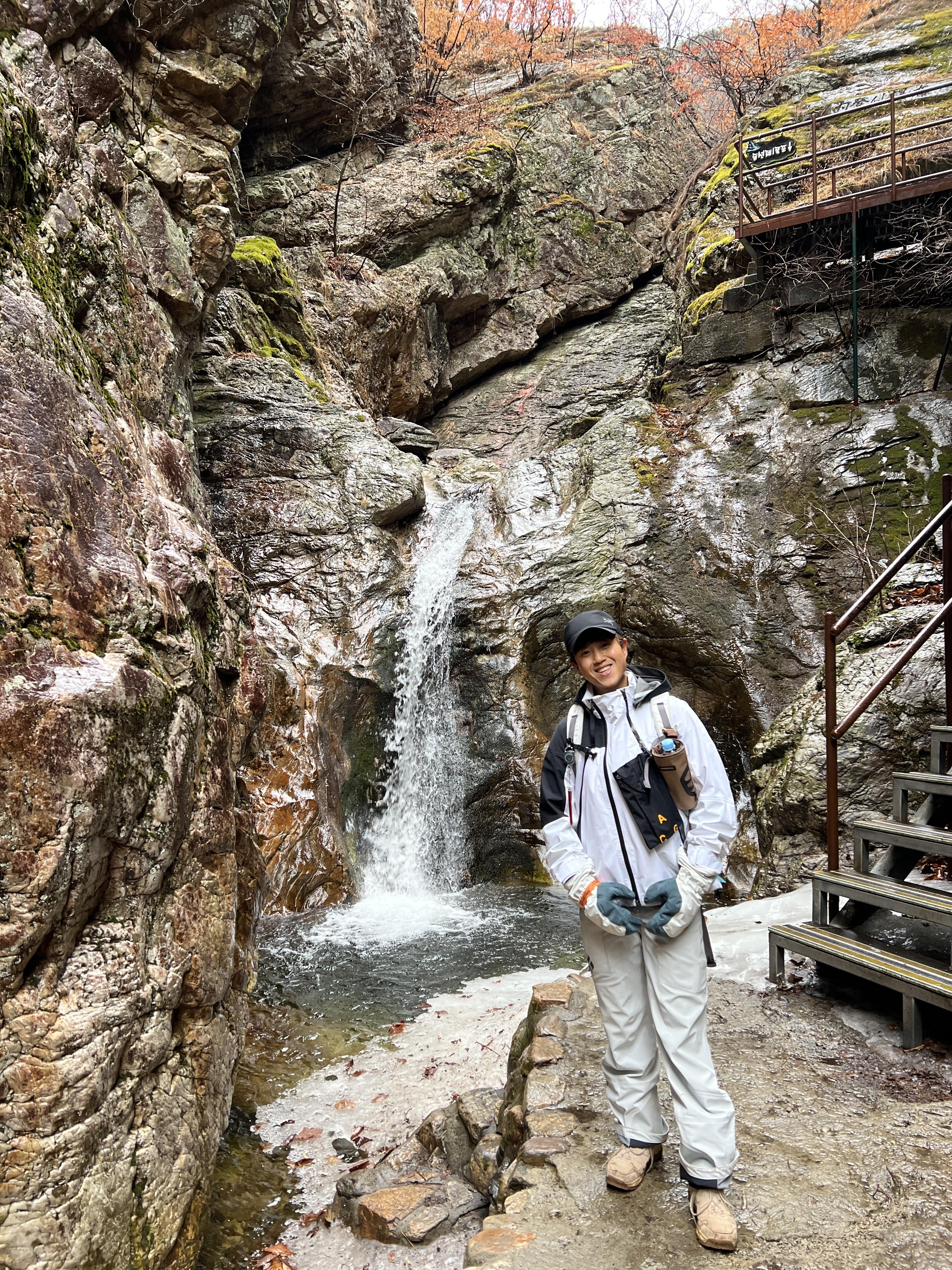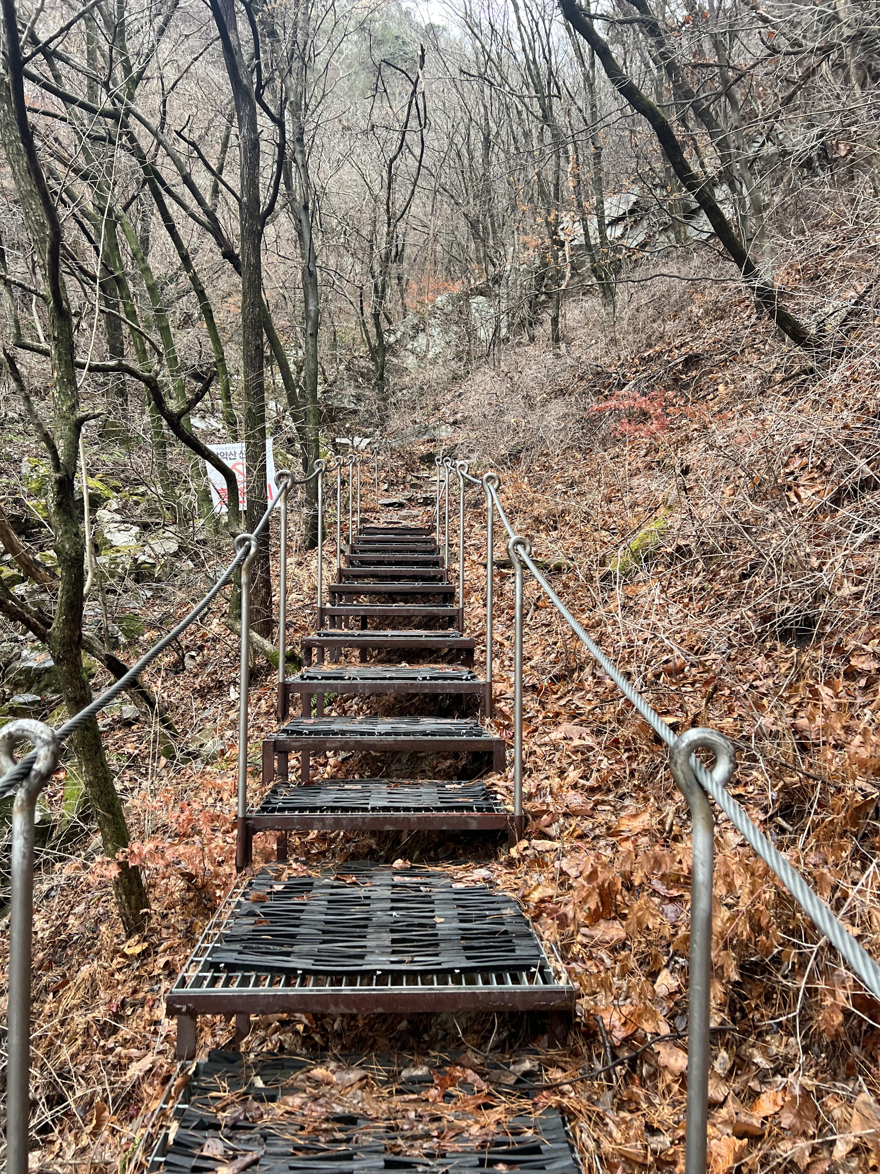 🔺마지막에 도착할때 쯔음에는 철계단이 나오며, 철계단을 내려가면 등선폭포에 도착합니다. 사실 등선폭포가 얼어있는 모습을 기대했는데, 얼지는 않아서 조금 아쉬웠습니다.