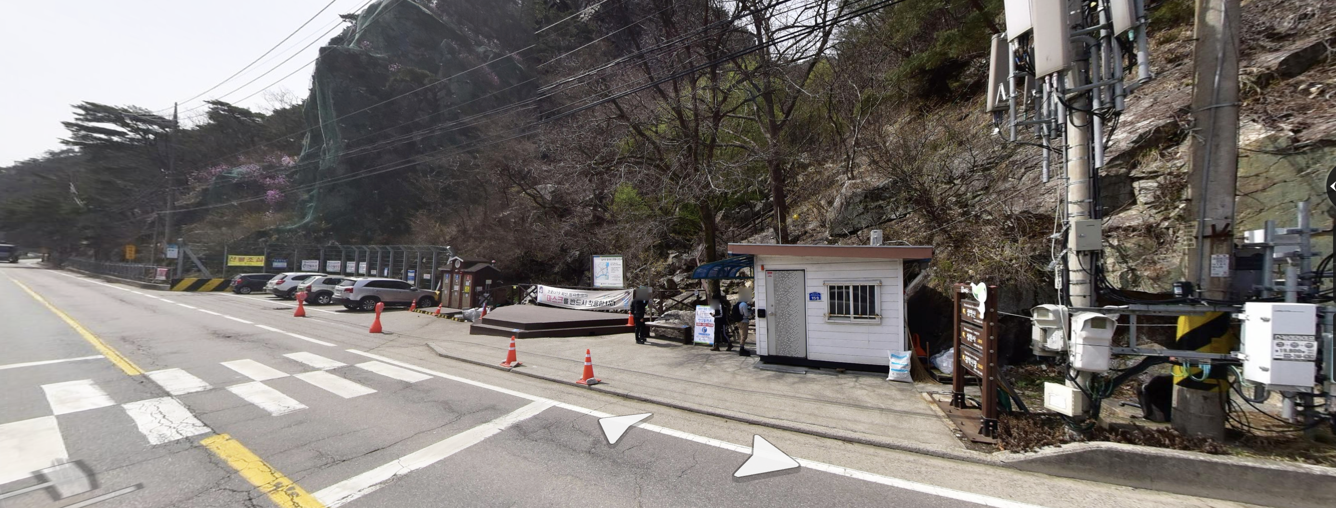 (사진이 없어 로드뷰로 대체합니다.) 삼악산 매표소 주차장은 매우 좁은 편입니다. 약 4-5대 정도 수용이 가능하며, 삼악산매표소 입구에서 입장료 3000원을 지불한 뒤 입장이 가능합니다.
