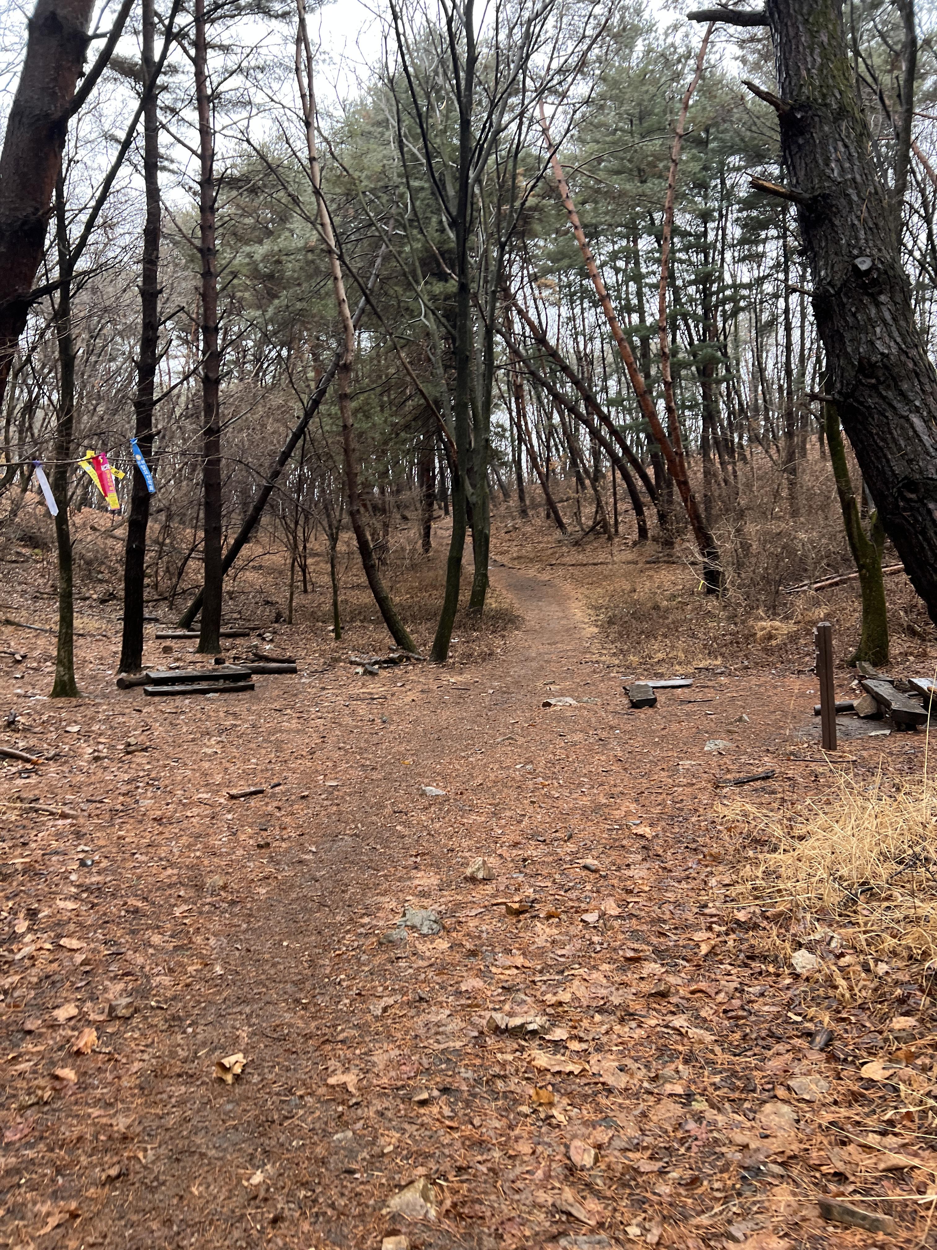 🔺내려오는 중간에 산장이 하나있는데, 라면, 커피 등 간단하게 먹을 수 있는 음식들을 판매하고 있습니다. 계단을 내려온 이후에는 거의 완만하게 내려오는 흙길의 평지입니다.