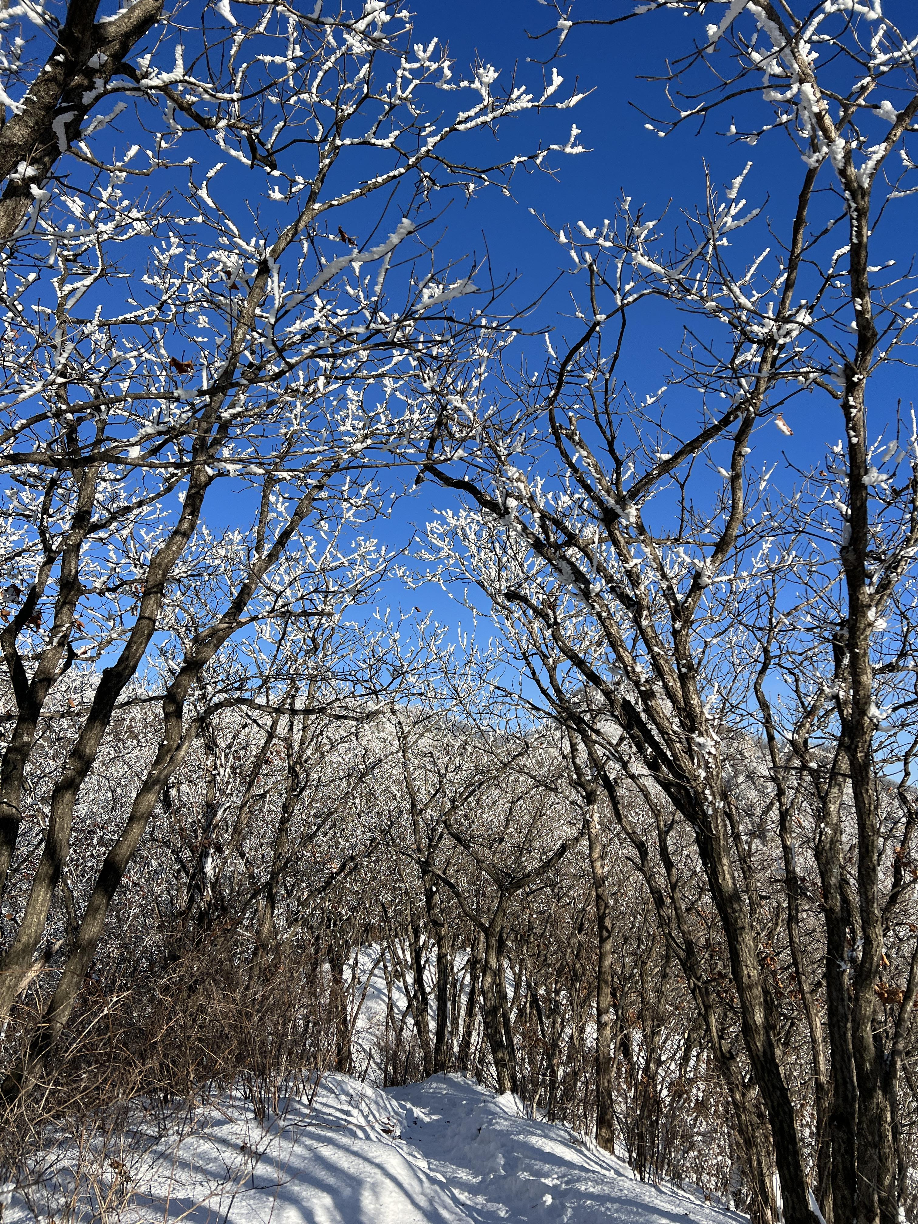 🔺올라가면서 상고대가 너무 이뻐 사진을 안찍을 수가 없었습니다. 특히 푸르른 하늘에 상고대를 보는것은 등산인들이 겨울철 눈꽃산행을 하면서 최고로 치는데, 이날은 오후 2시였음에도, 운이 매우 좋았습니다.