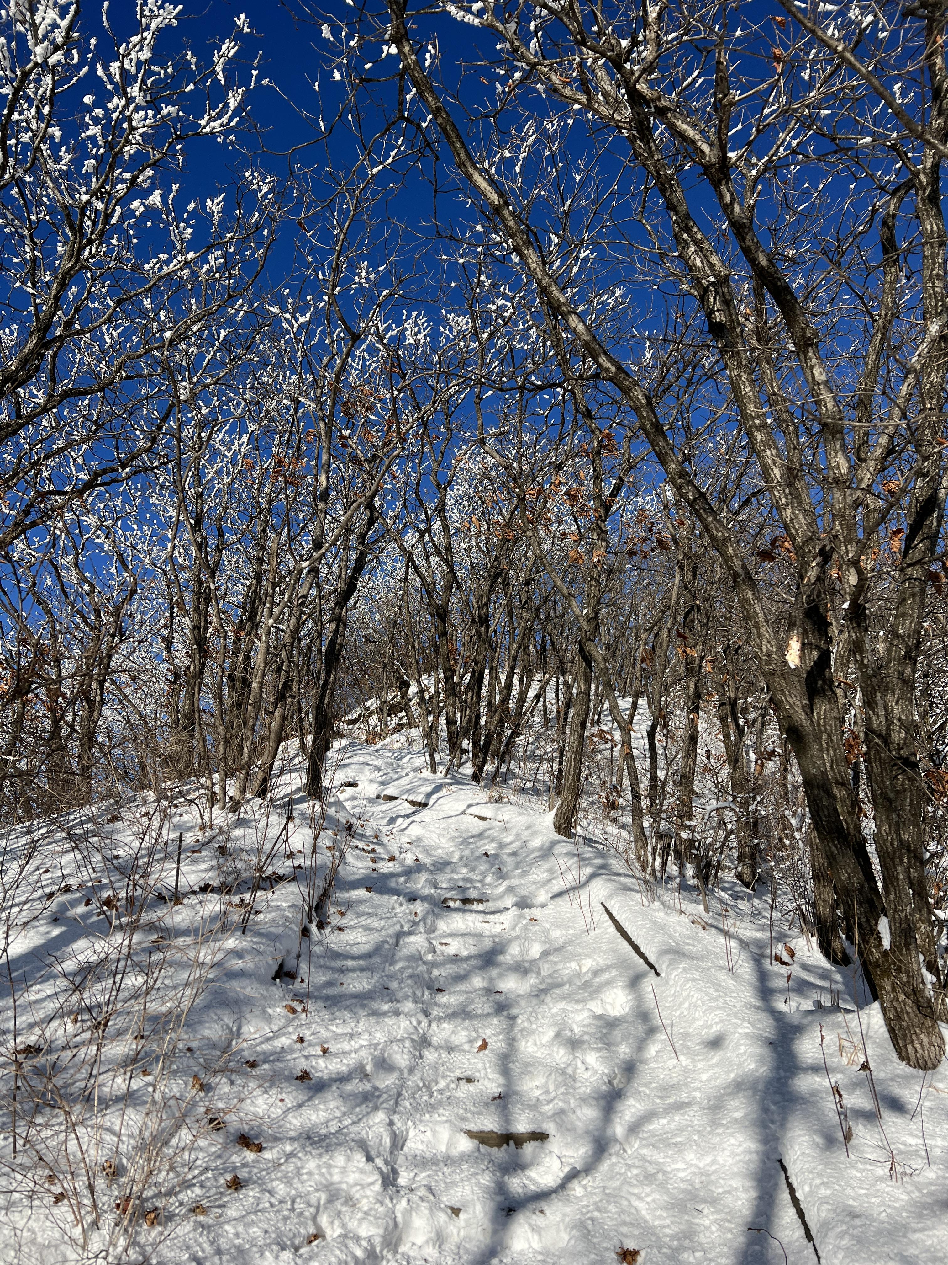 🔺사실 쥐넘이재까지는 뷰가 없는 숲길에 오르막이라 매우 지루한 코스지만, 상고대가 이쁘게 펴있는 바람에 시간가는 줄 모르고, 힘든지 모르고 오를 수 있었습니다. 상고대가 없으면 매우 지루한 오르막길입니다.