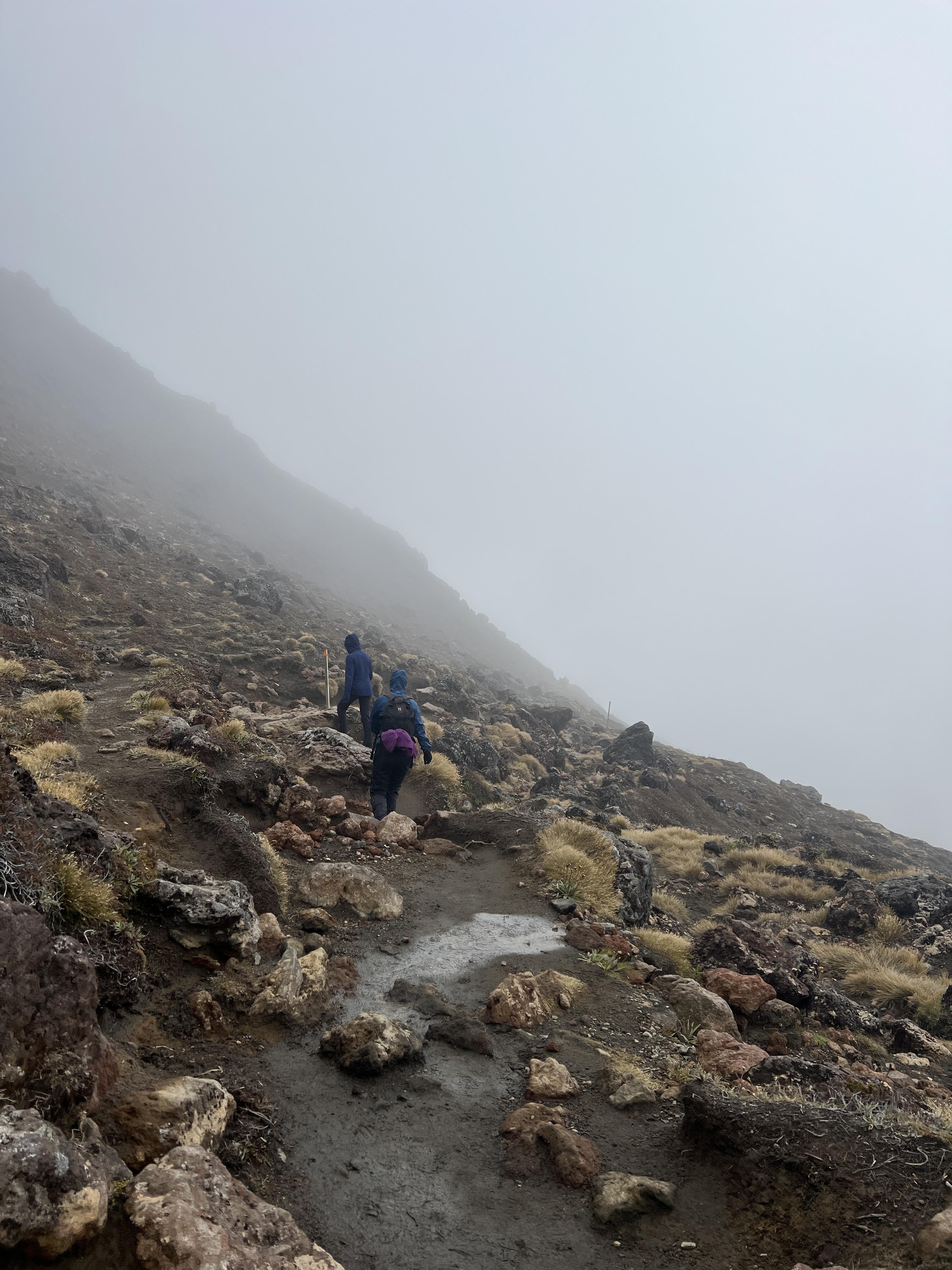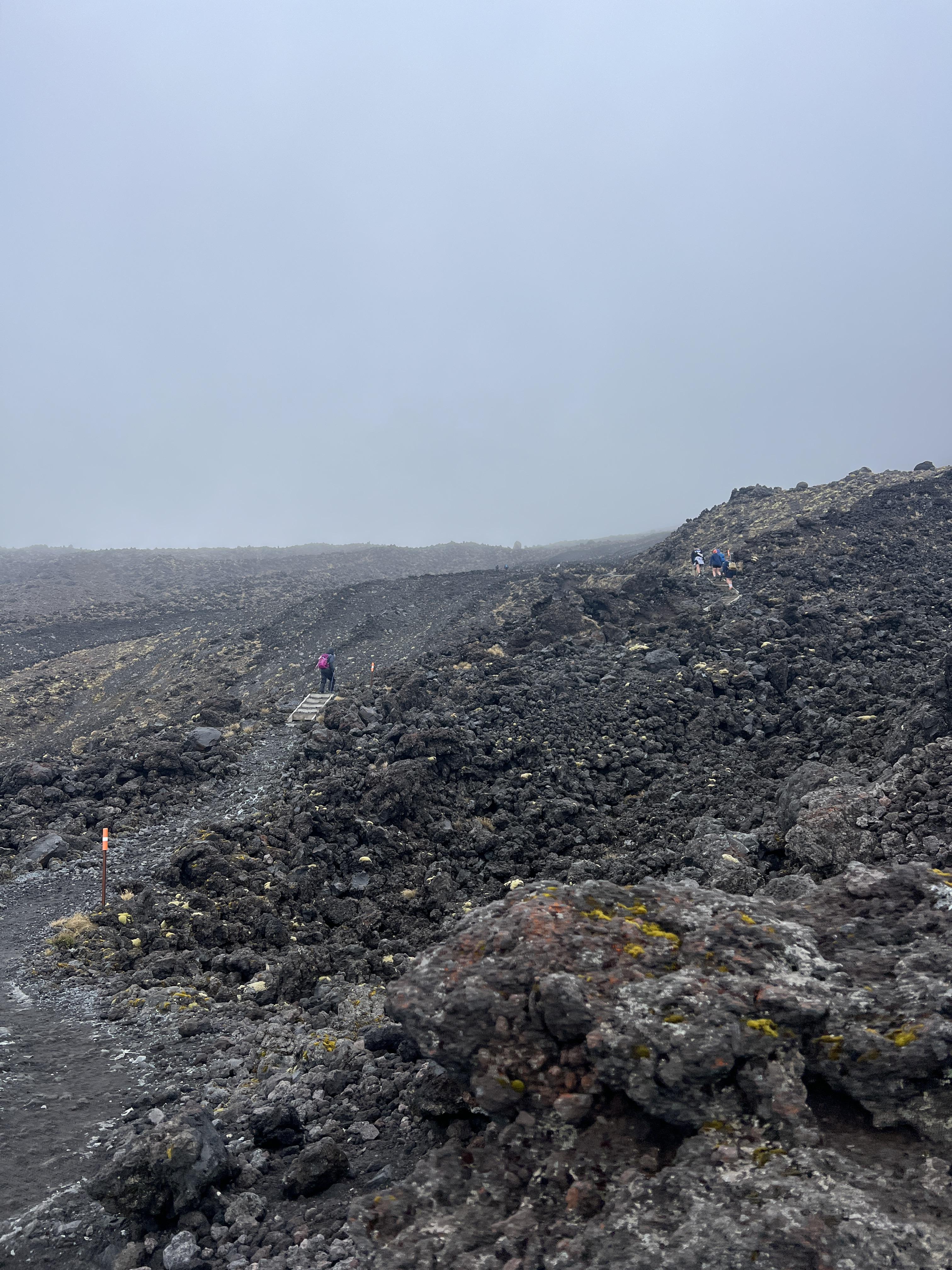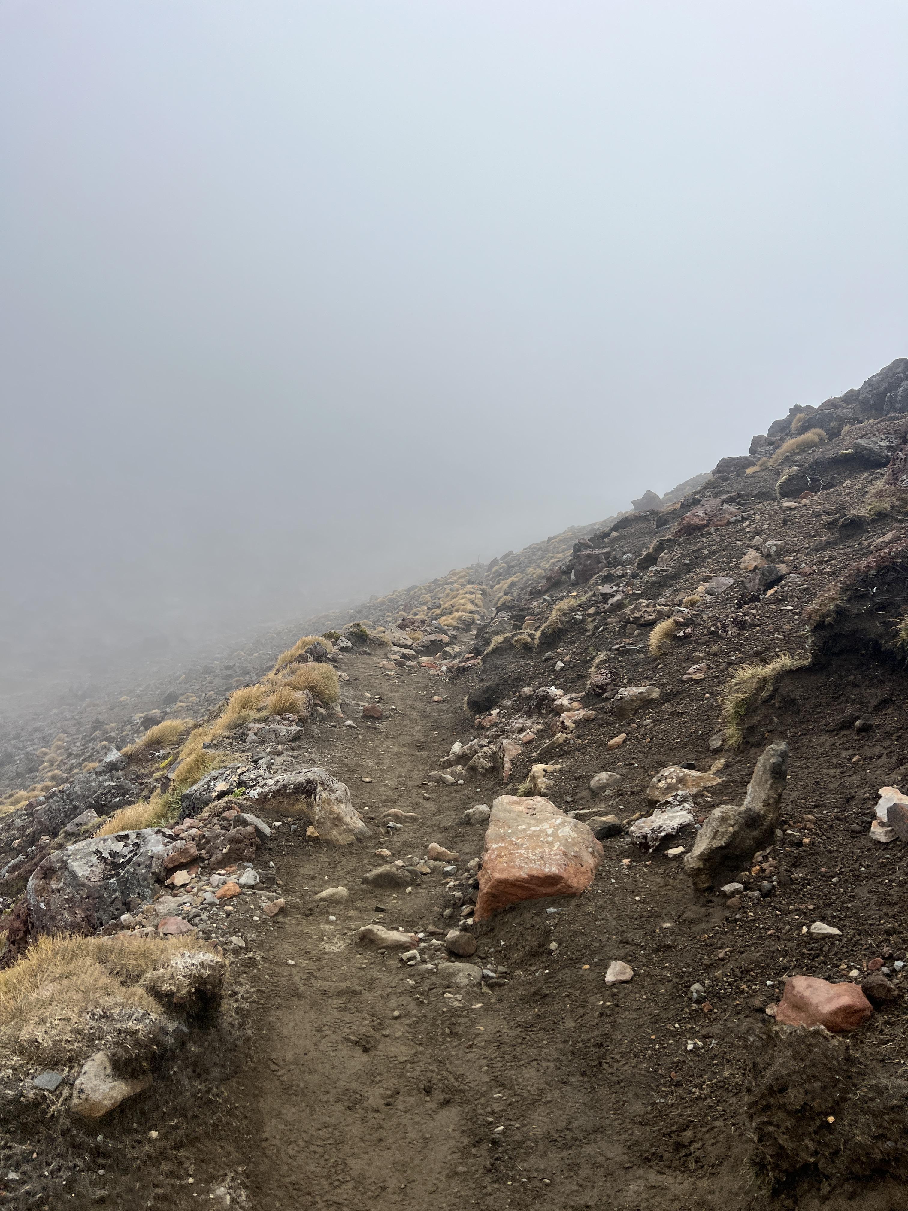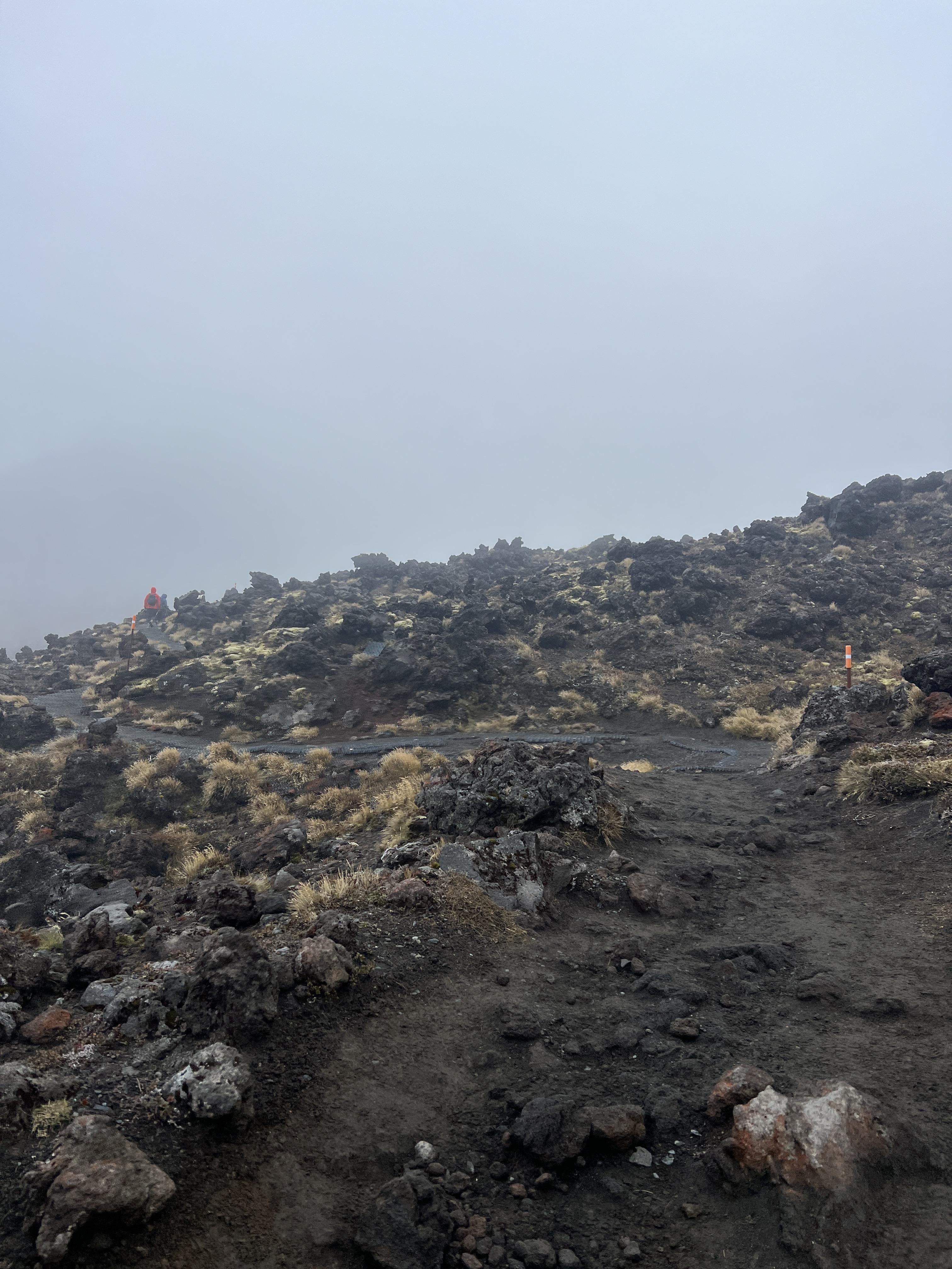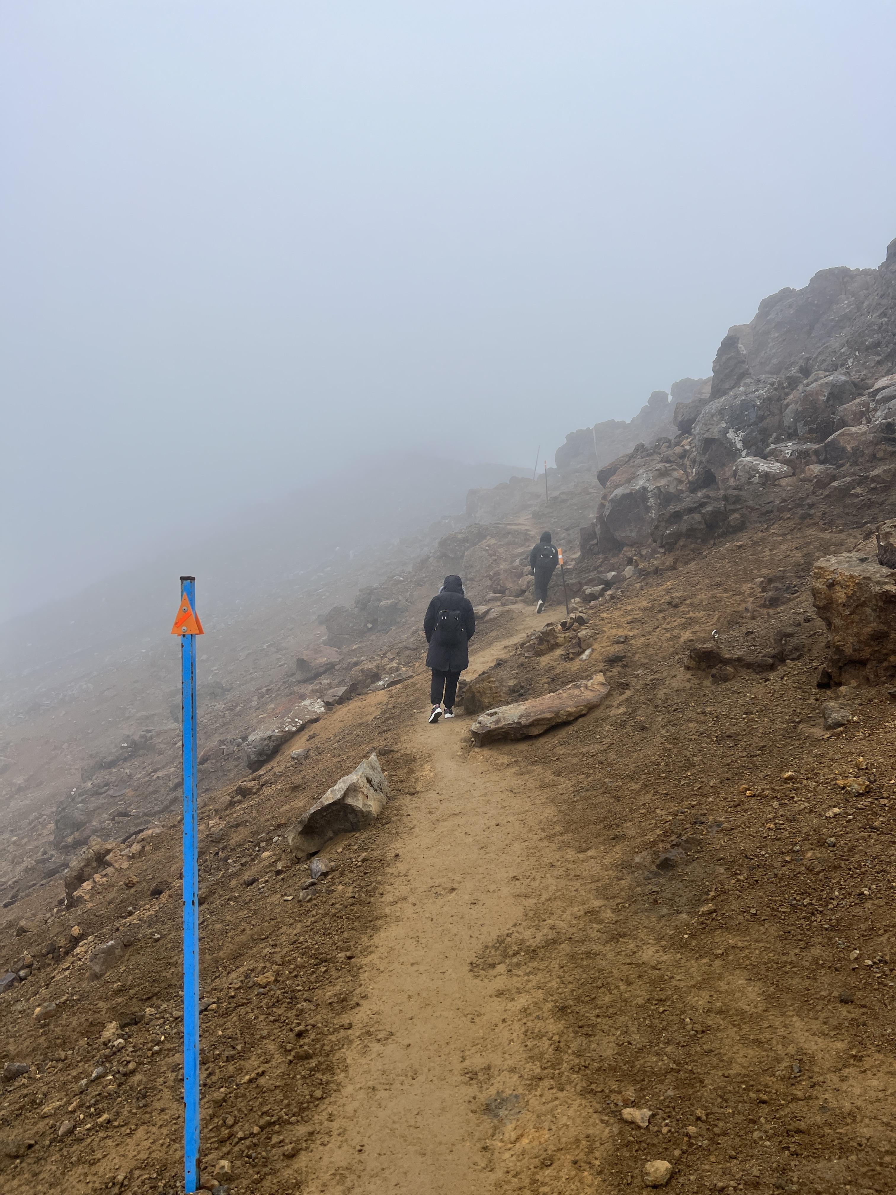 🔺평지가 끝나면 곧바로 오르막이 나오기 시작한다. 이 오르막은 앞에 올랐던 오르막보다 훨씬 힘들었다. 특히 여기서부터 바람이 엄청나게 불기 시작했으며 길도 진흙과 화산재가 섞어 엄청나게 미끄러웠다. 다른 분들이 다녀온 사진을 보면 여기 길도 엄청 멋있던데.. 나는 왜 곰탕속에 있는가? 하며 조금 속상하기도 했다.