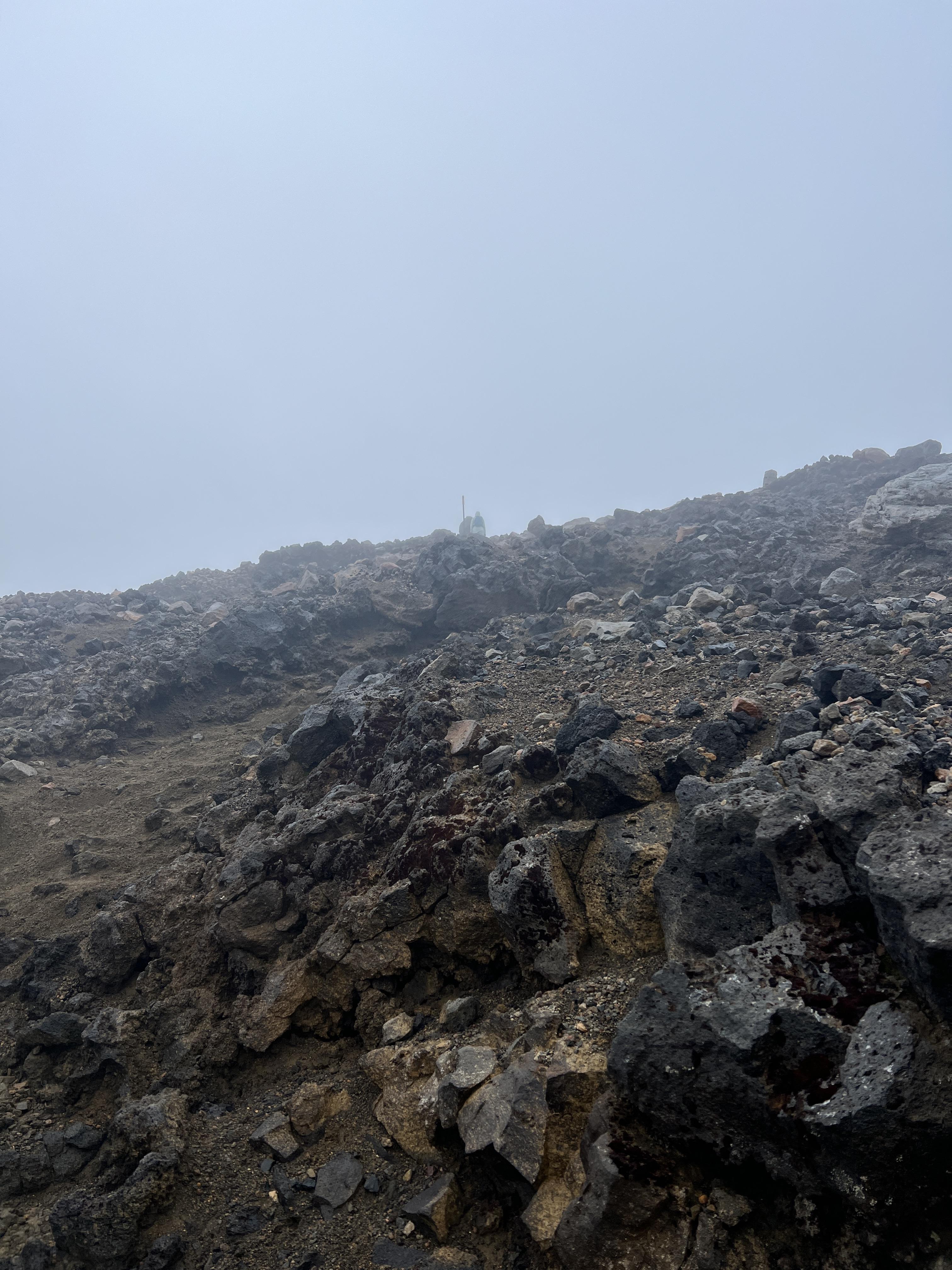 🔺호수를 지나치고 앞으로 나아가니 화산재와 돌밭 그리고 내가 여태 올라오던 익숙한 풍경들이 눈에 다시 보이기 시작했다. 그리고 안개도 점점 사라져 간다. 아마도 정상부근에 안개가 걸쳐 있는 모양이다.