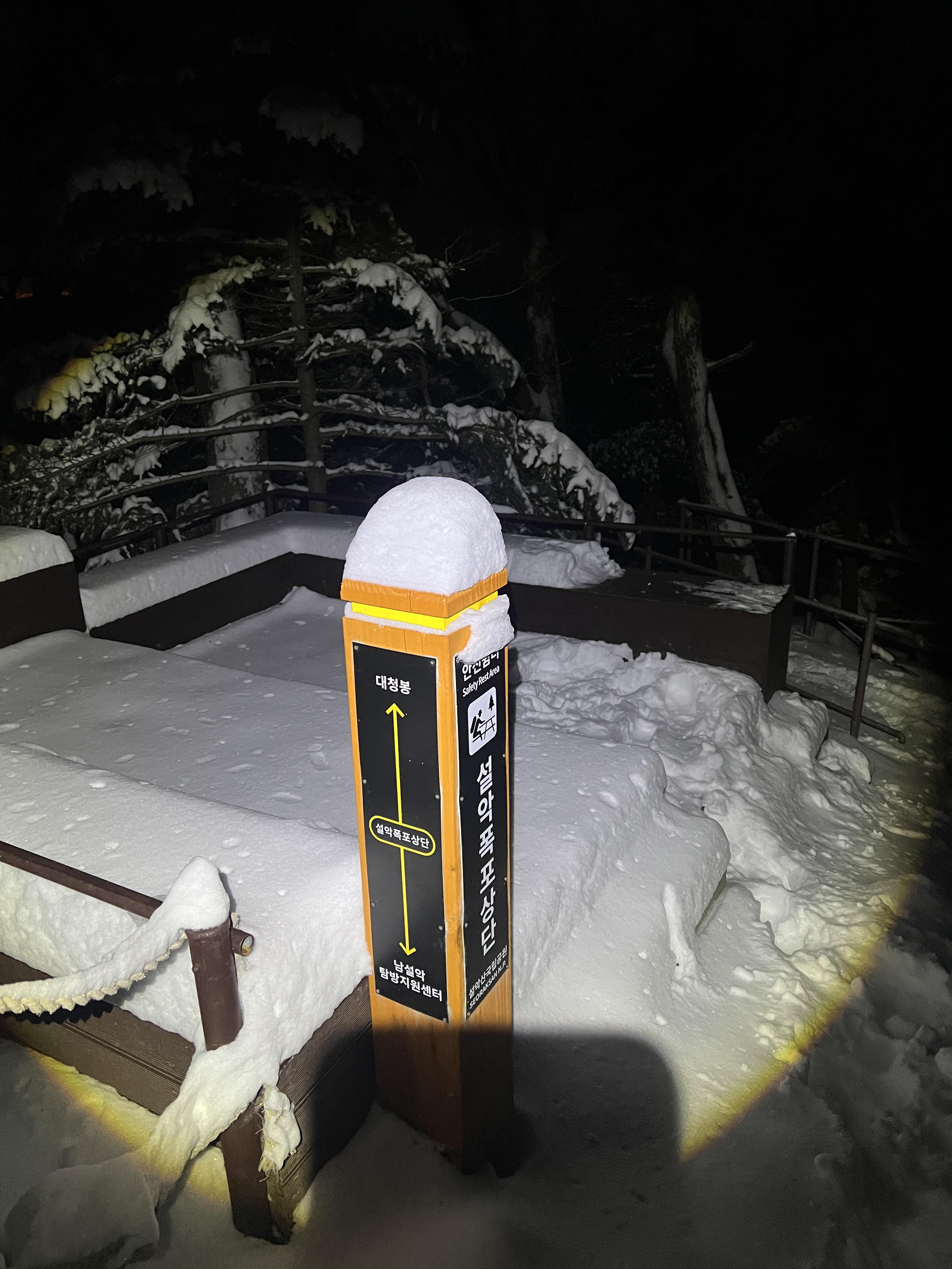 🔺3일이나 통제되었는데 발자국이 웬말인가? 했는데, 나중에 알고보니 설악산 오색코스는 폭설이 내리면 직원들이 총 출동하여 안전하게 제설작업을 하고 통제를 풀어주는 로직을 가지고 있었고, 앞서간 발자국은 설악산 국립공원 직원들이 밤새 제설작업을 하여 길이 나있는 것이다.