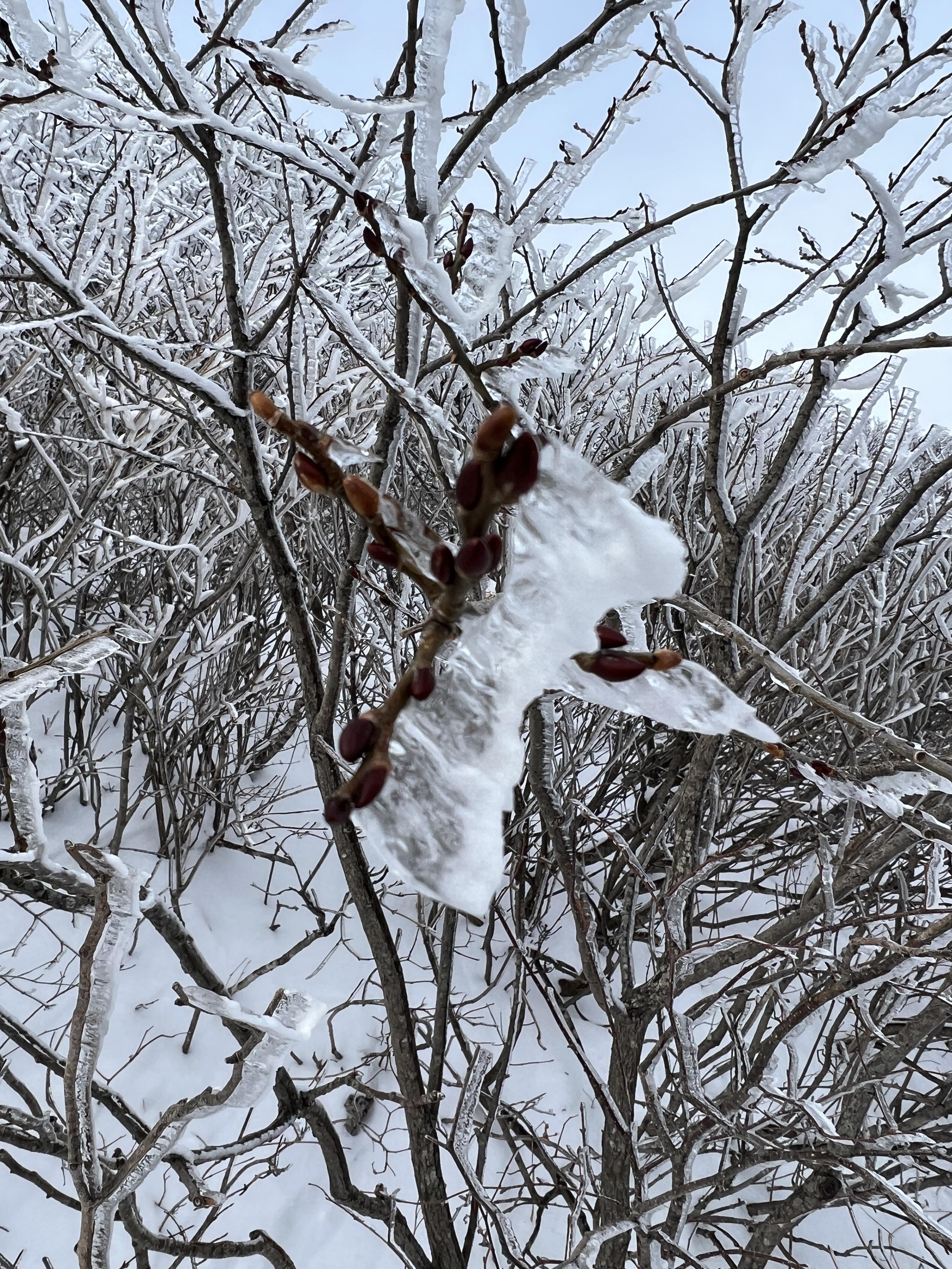 🔺눈꽃은 보통 3가지로 분류되는데, 눈이 쌓여 멀리서보면 꽃처럼 보인다는 "설화" 그리고 수증기와 적절한 바람 그리고 낮은 온도에서 바람의 결대로 굳어버린 "상고대" 마지막으로 상고대가 녹았다가 급격한 기온하강으로 얼어붙어버린 "빙화"