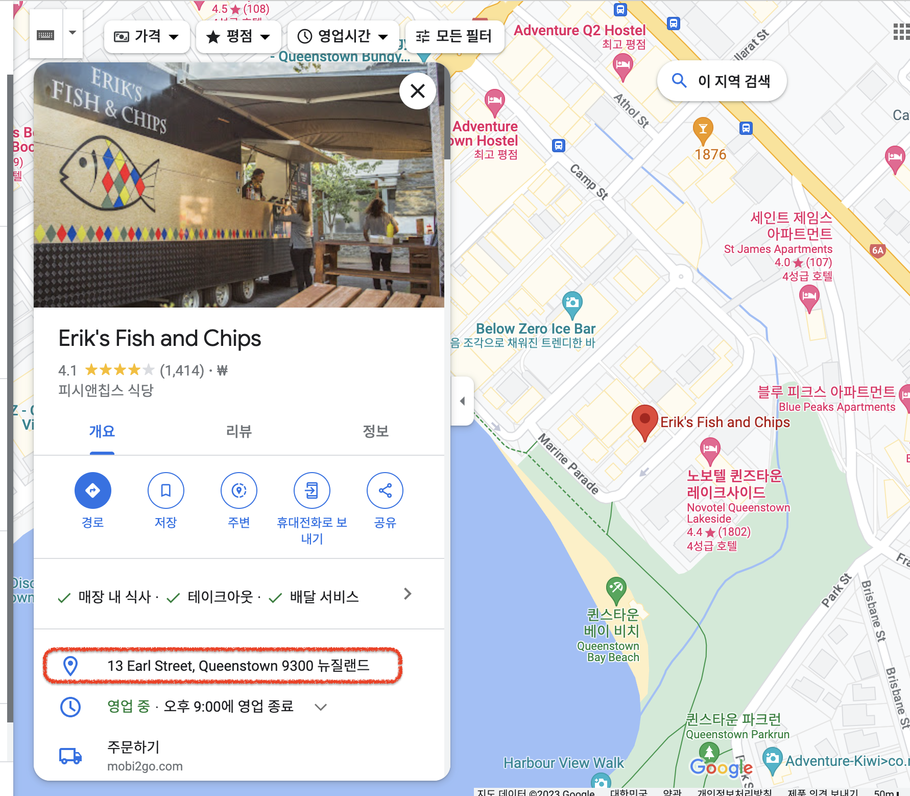 🔺 뉴질랜드 피쉬앤칩스는 퀸즈타운에서 가장 유명한 먹거리 골목에 위치하고 있습니다. 해당 구역은 퀸즈타운의 먹거리, 쇼핑, 다양한 사람들이 모이는 곳이며 피쉬앤칩스는 그 거리 중심에 있습니다.
