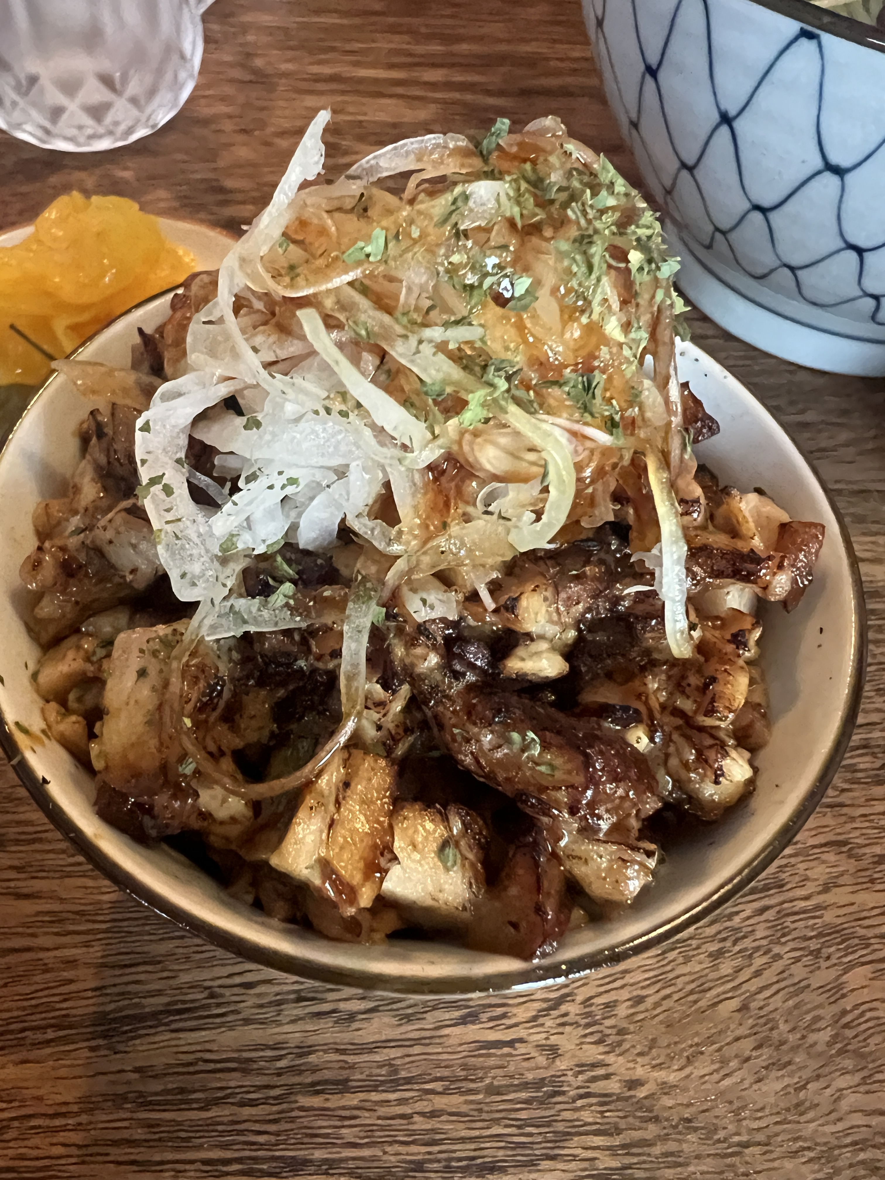 가장 먼저 키츠네, 고기국물의 느끼함과 파의 깔끔함이 만나 중화적인 맛을 낸다. 고기에는 불향이 묻어있어 한입 베어물면 불향과 느끼함 이후에 깔끔함이 조화롭게 입안을 자극한다.