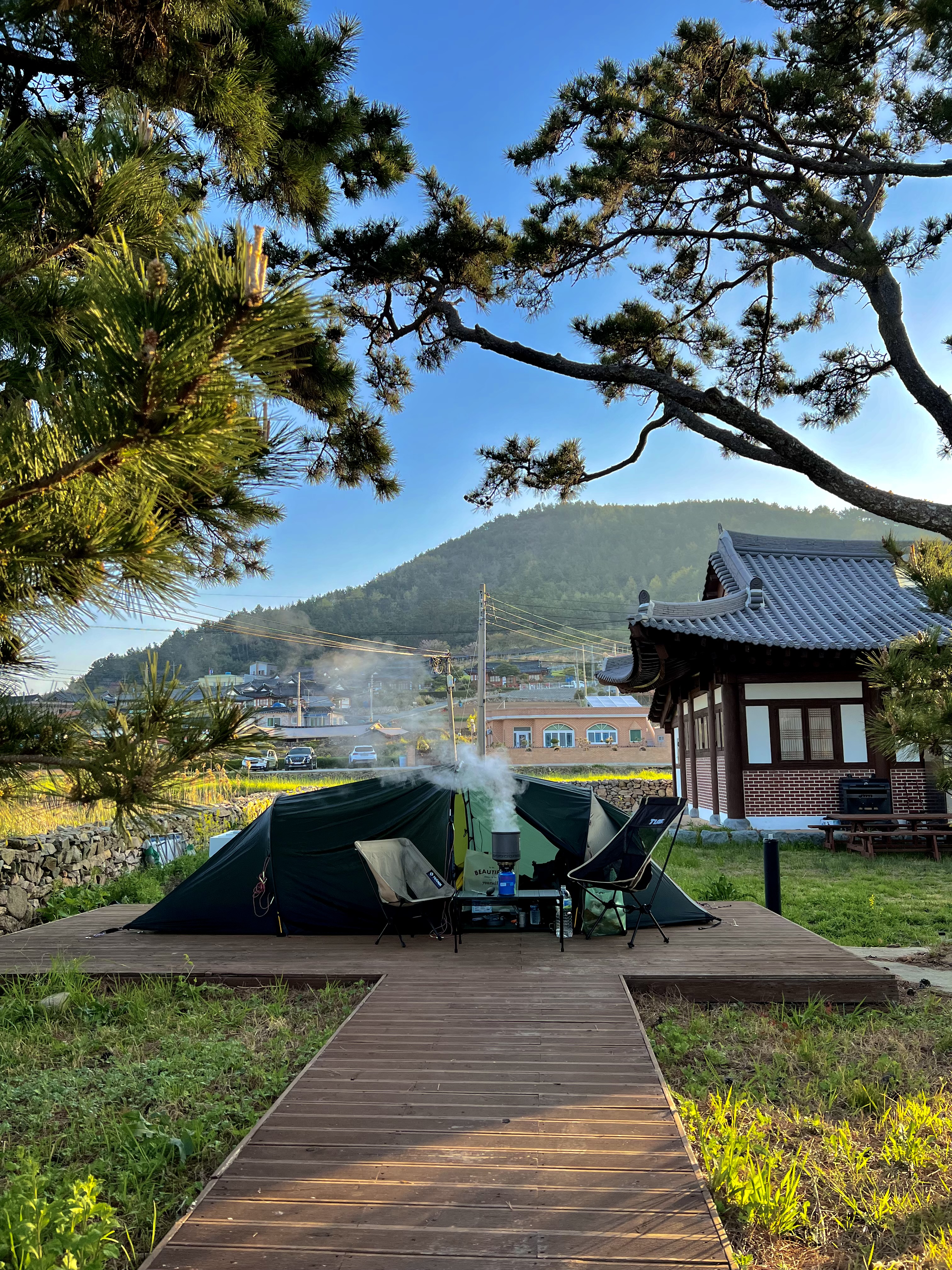 그래서 철수해야 하나 하다가 큰가방을 매고다니는게 안쓰러웠는지, 마을 주민분이 본인의 앞마당에 텐트를 치는 것을 허락해줘서 운좋게 백패킹을 진행하게 되었다.