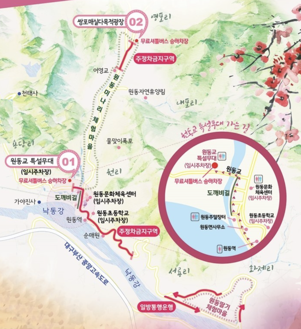 원동마을은 광양 매화마을에 비해서 크기가 크지는 않지만 순매원이라 하여 매화가 어느정도 군락지 형태로 자리잡고 있는 포인트가 있다. 이 순매원은 내년 2000원을 내고 입장이 가능했지만 올해 24년에는 재정비로 인하여 개방을 안한다고 한다.