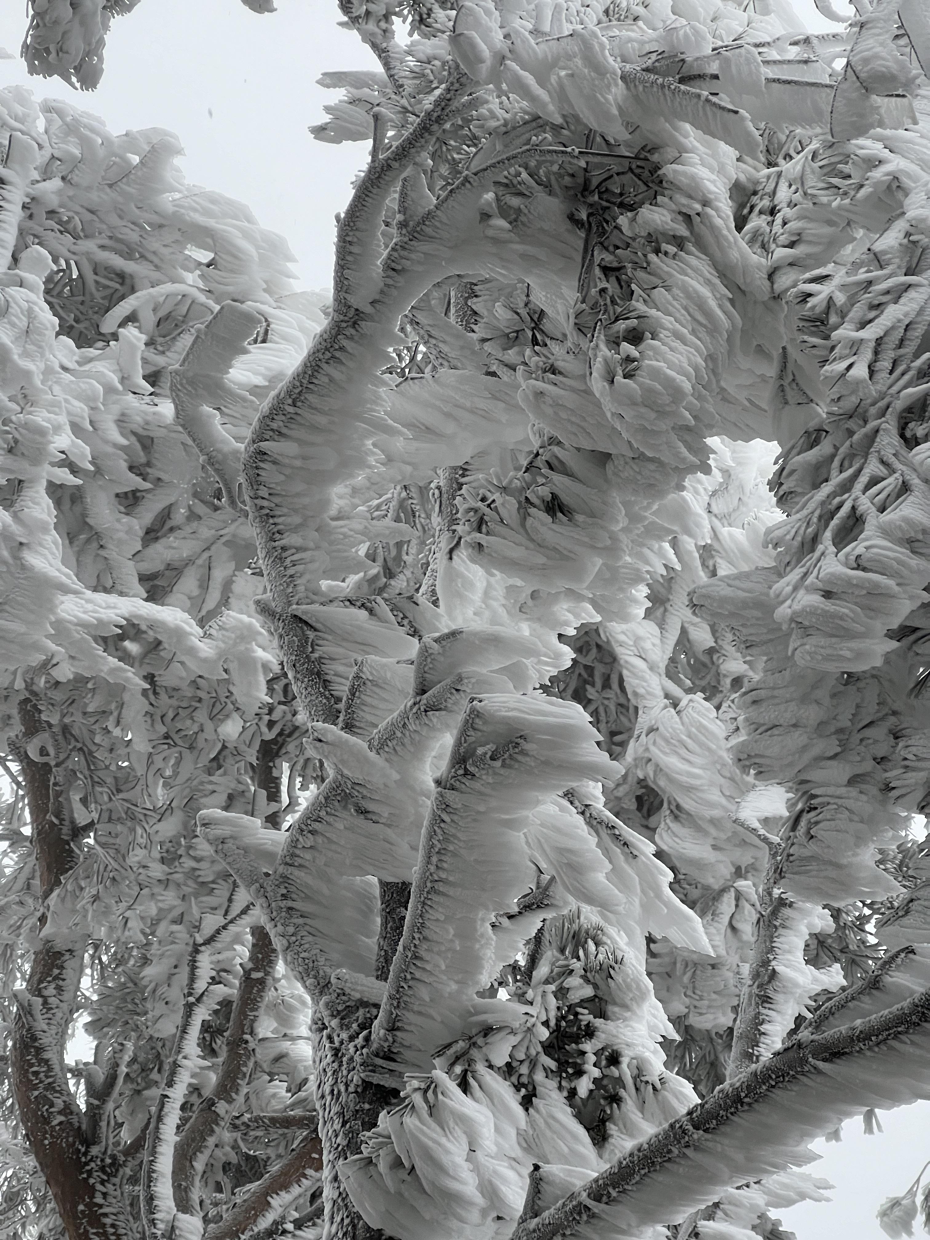 정령치를 넘어서 세걸산으로 향할수록 상고대는 점점 두꺼워진다. 대부분의 나무는 두꺼운 상고대의 무게를 이기지 못하고 주저 앉아 등산로를 지나쳐가는 것이 점점 힘들어진다.