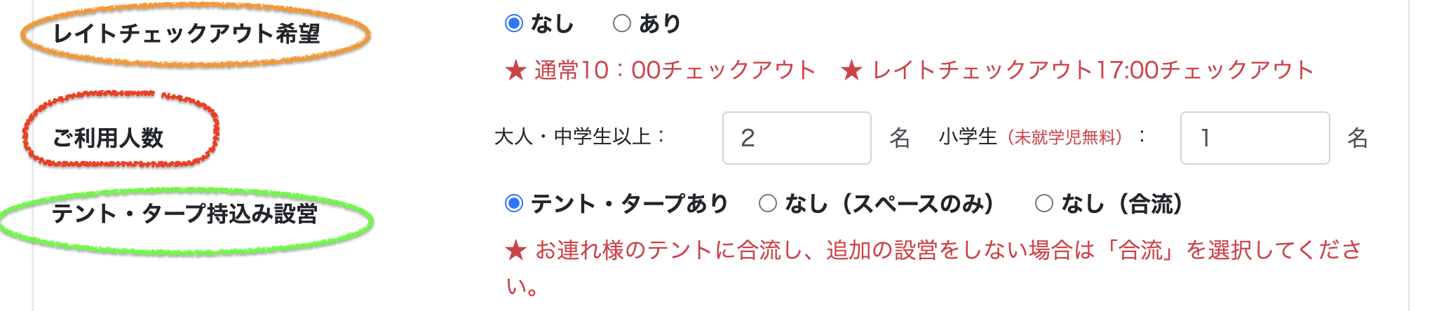 여기서 대부분 한국사람들이 차량이 있다면 렌트카일텐데, 초록색 부분처럼 작성을 해주면 된다. 그리고 차량번호는 아래 "불명"을 붙여넣으면 된다. 어차피 위 3개 항목은 당일날 체크인을 할때 변경이 가능하니 부담없이 작성하도록 한다. 차를 가져간다고 했다가 안가져가도 되고, 텐트가 5개였다가 3개로 줄어도 가능하며 7개로 늘어도 가능하다.